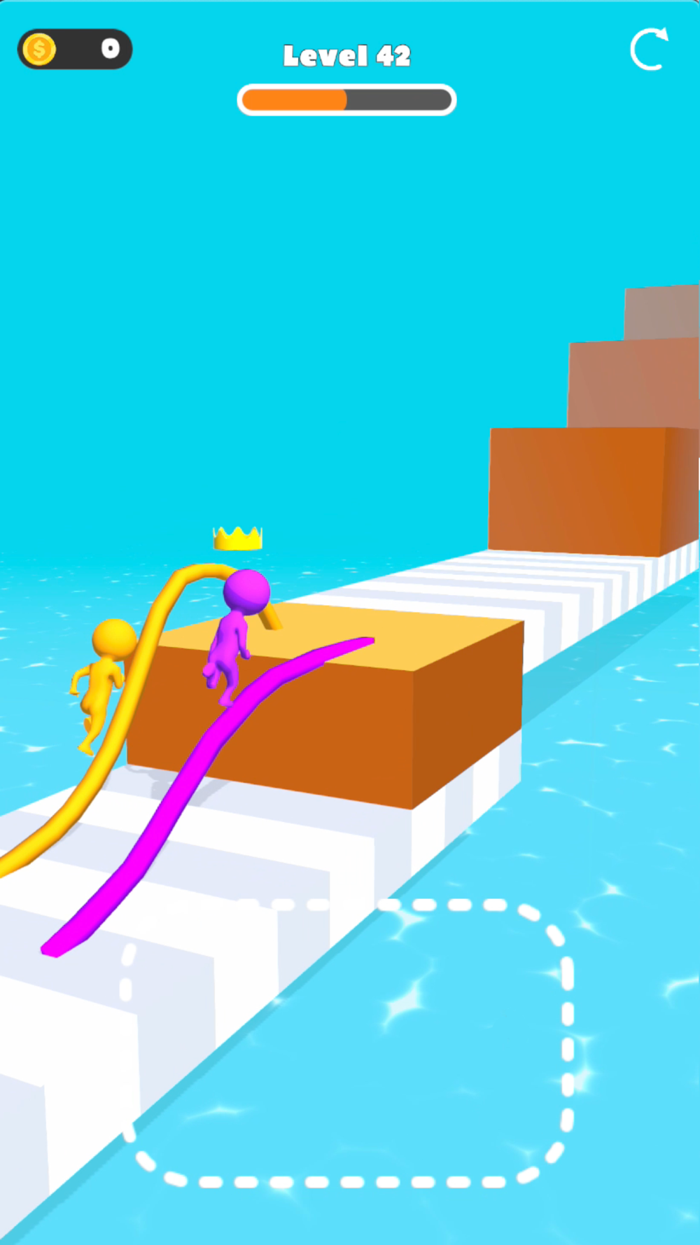 Draw a way for your player to reach the finish line before the bad yellow guy !
