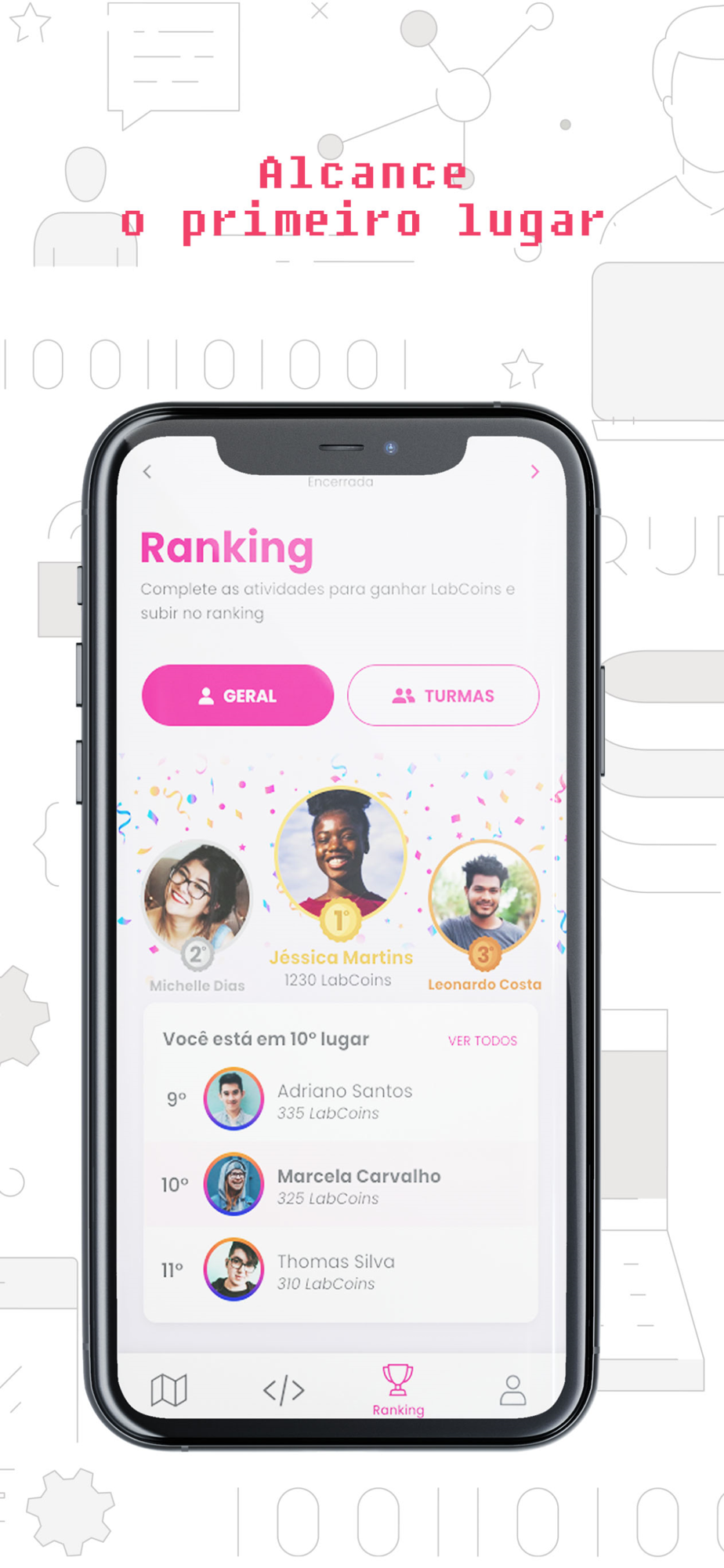 Com a programação você pode começar a transformar ideias em aplicações, jogos ou sites. O LAB365 te guia por toda sua jornada de aprendizado, iniciando por exercícios pequenos que cabem na sua rotina diária e mantêm você motivado.