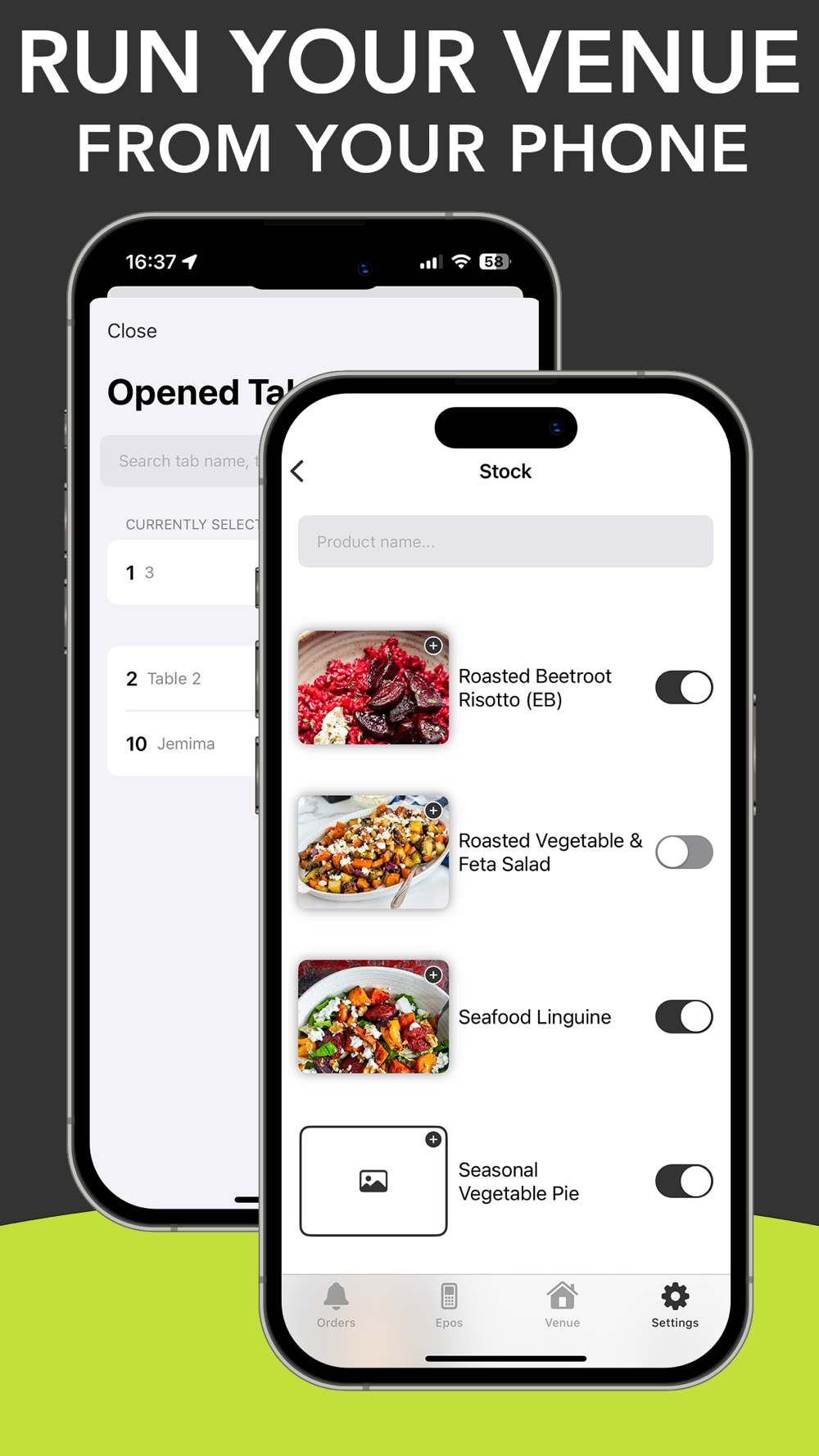 // Venues and employees can stay up to date by managing the digital menu whenever needed.