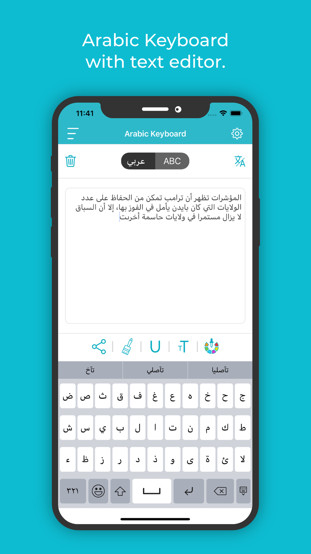 • Changing the font, the color, underlining features inbuilt in this Arabic keyboard iOS.