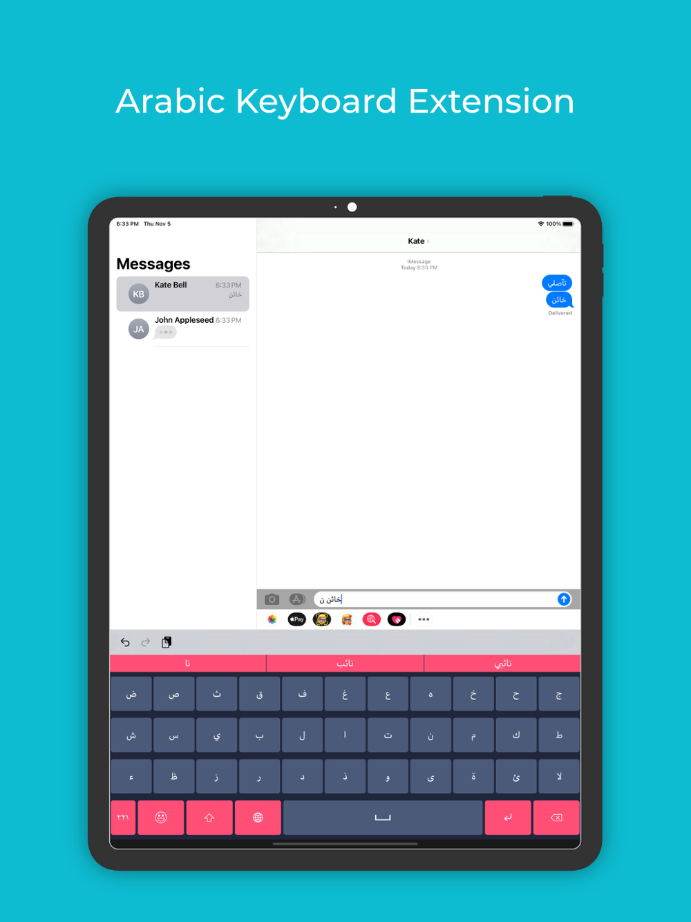 • Easily write messages in Arabic language with the Arabic keyboard for iOS.
