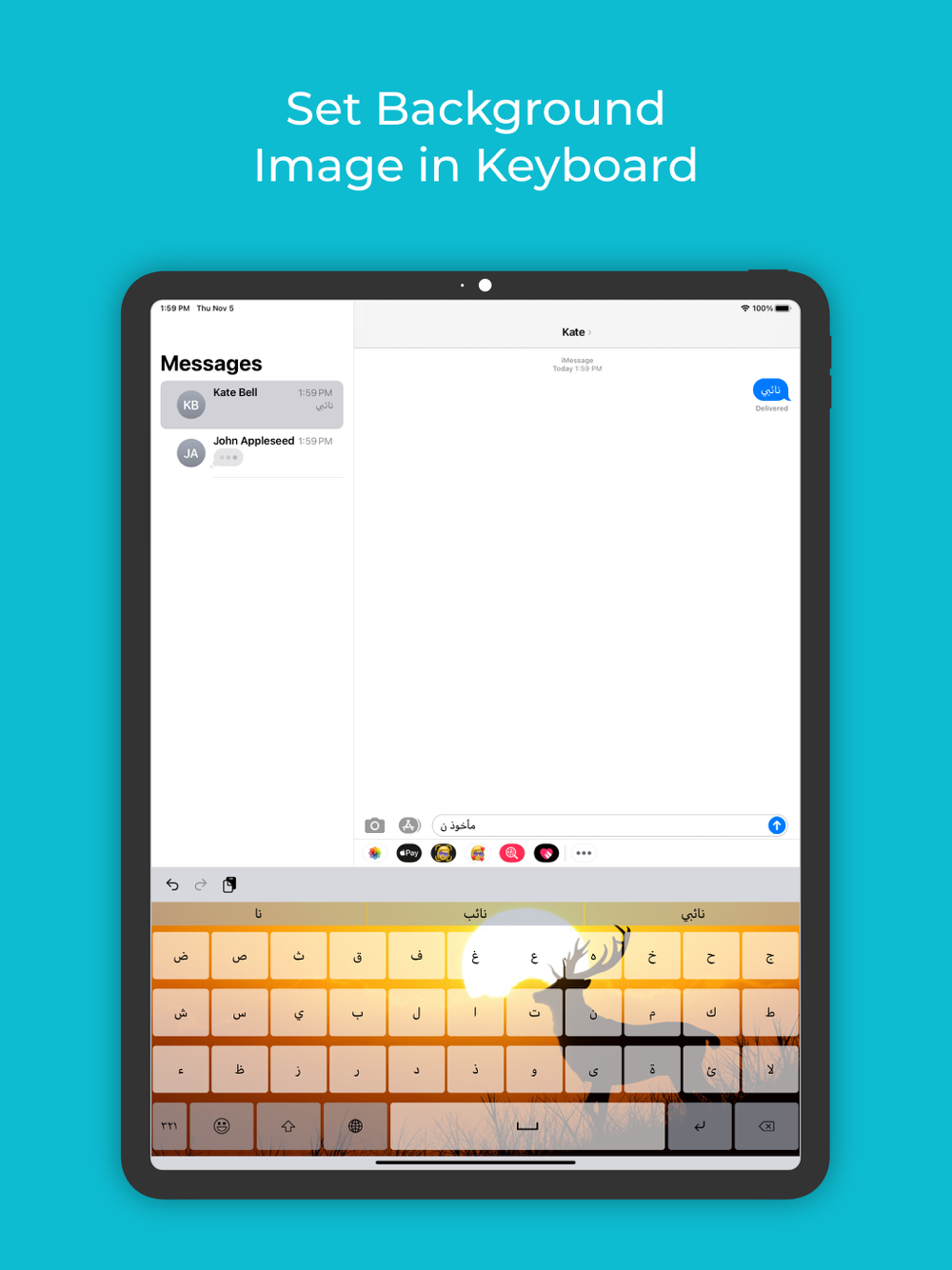 • With the Arabic keyboard for iOS, you can even set your own image in the background.