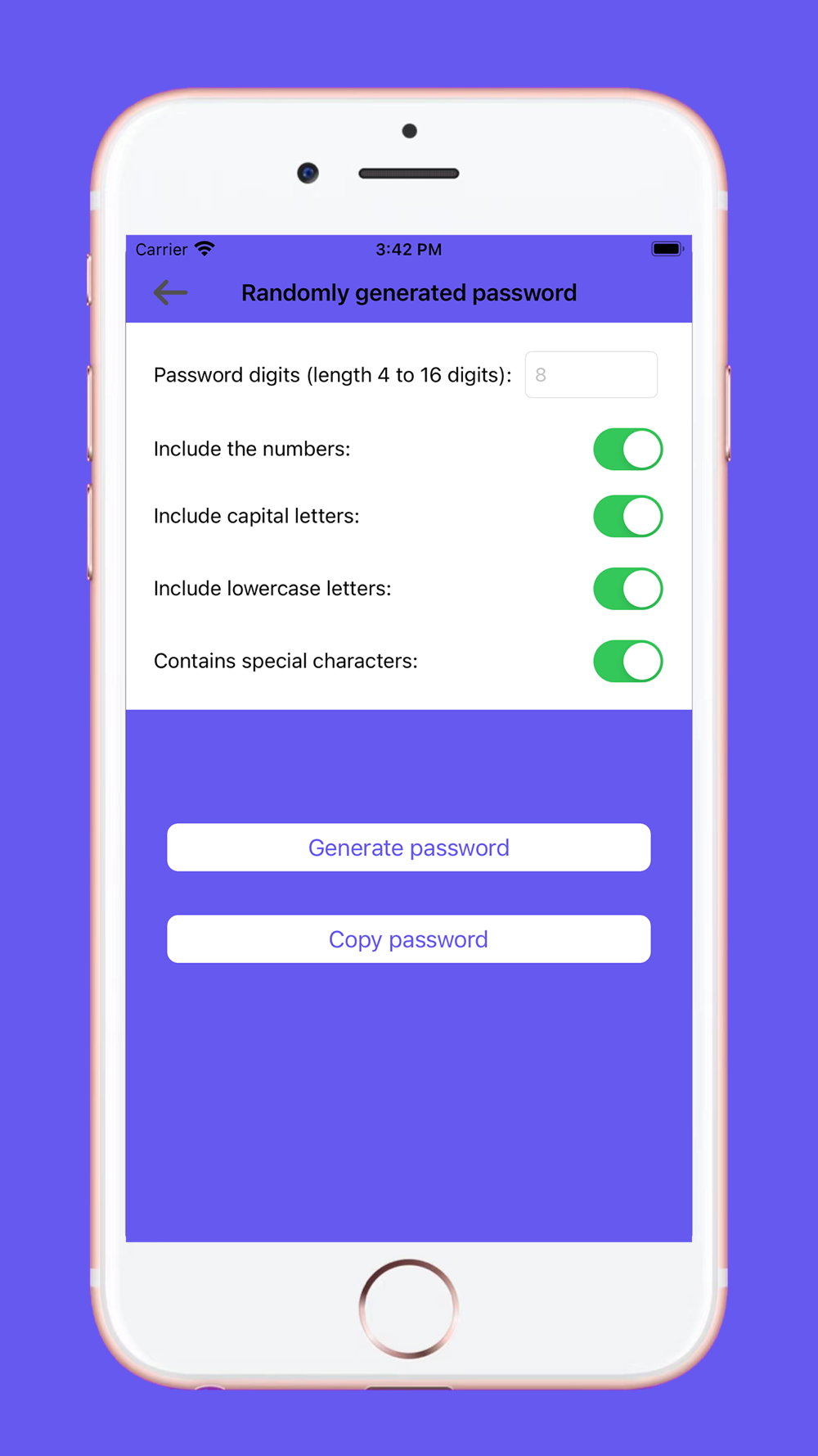 (Randomly generate password) - Enter the password length, select other requirements, and get a random password.