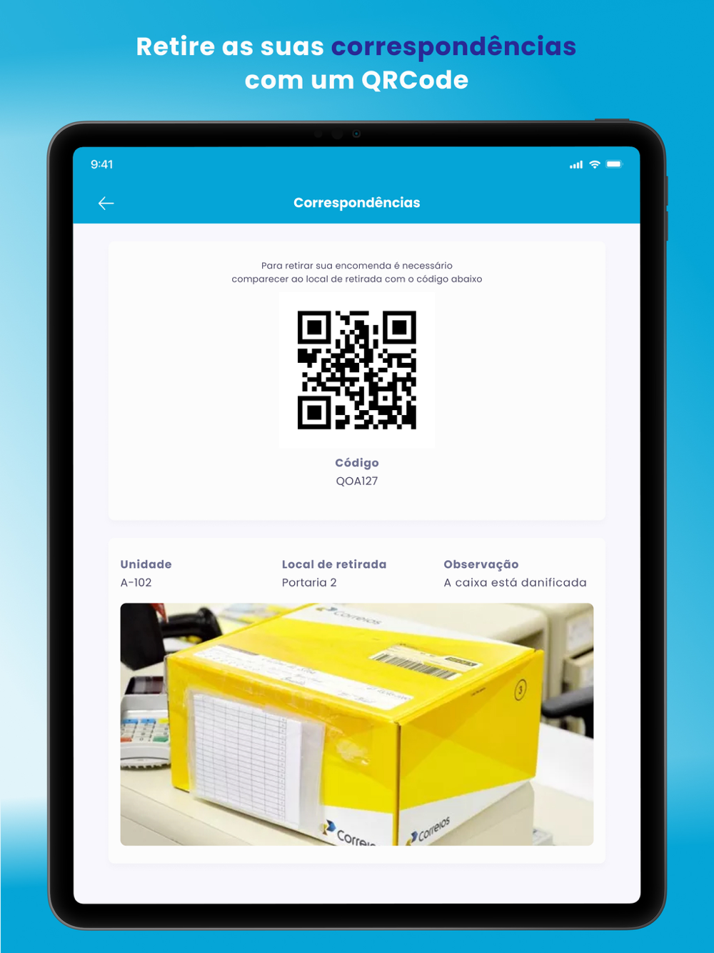 • CORRESPONDÊNCIAS: Ansioso pela entrega da encomenda que está para chegar? Porteiros tiram fotos dos pacotes e o morador recebe um QRCode para retirada do mesmo na portaria. Chega de caderninhos com letras que ninguém entende.