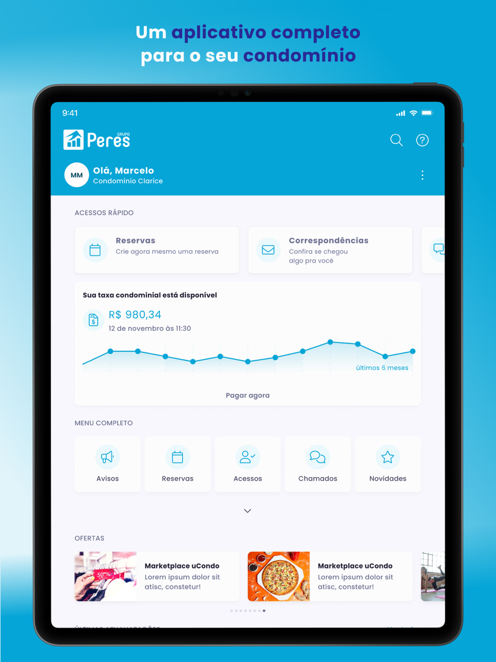 O aplicativo do Grupo Peres pode ser utilizado por Síndicos, Porteiros, Moradores e possui diversos recursos, dentre os principais: