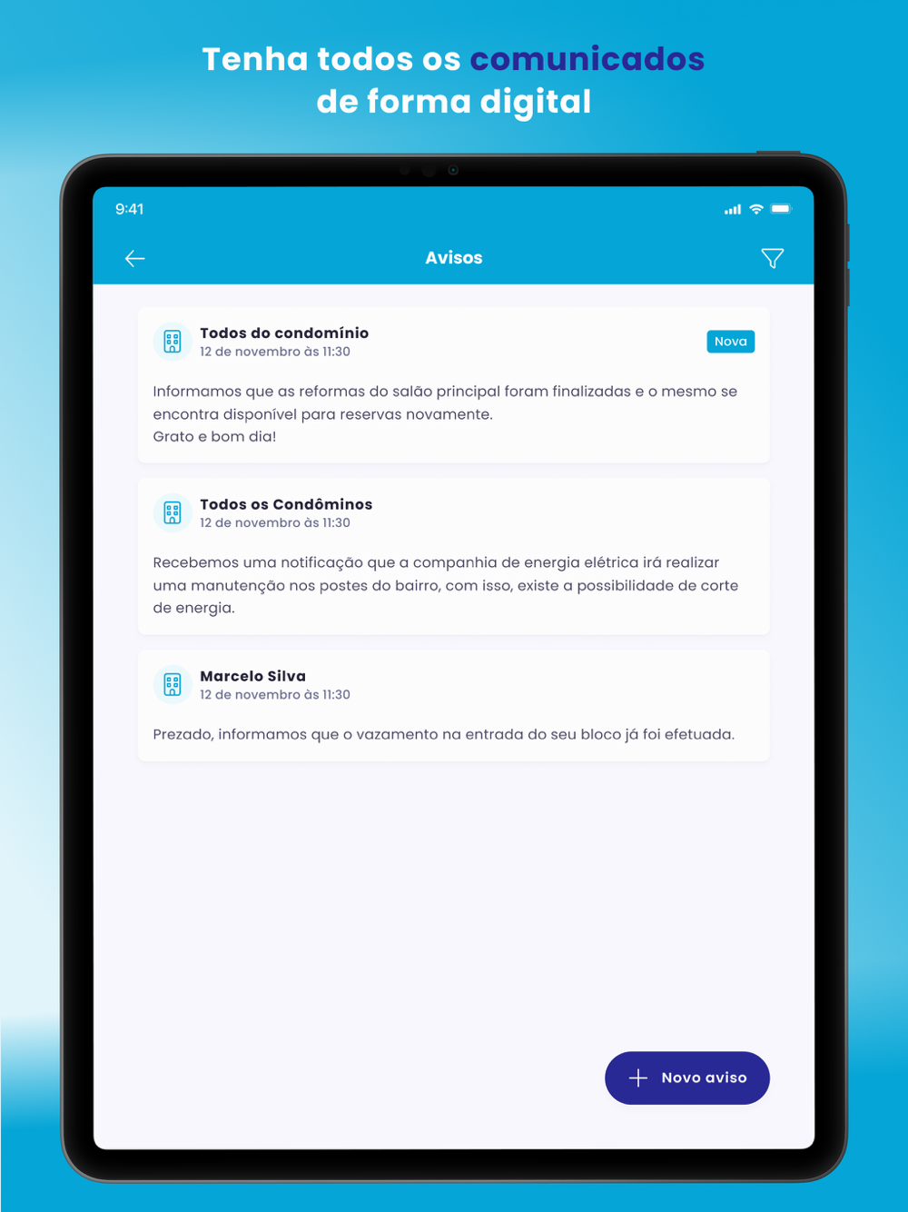 • AVISOS: Comunicados enviados pelos síndicos ou administradoras, moradores receberão notificações em tempo real no app Grupo Peres. Chega de papéis grudados no elevador ou grupos de WhatsApp informais.