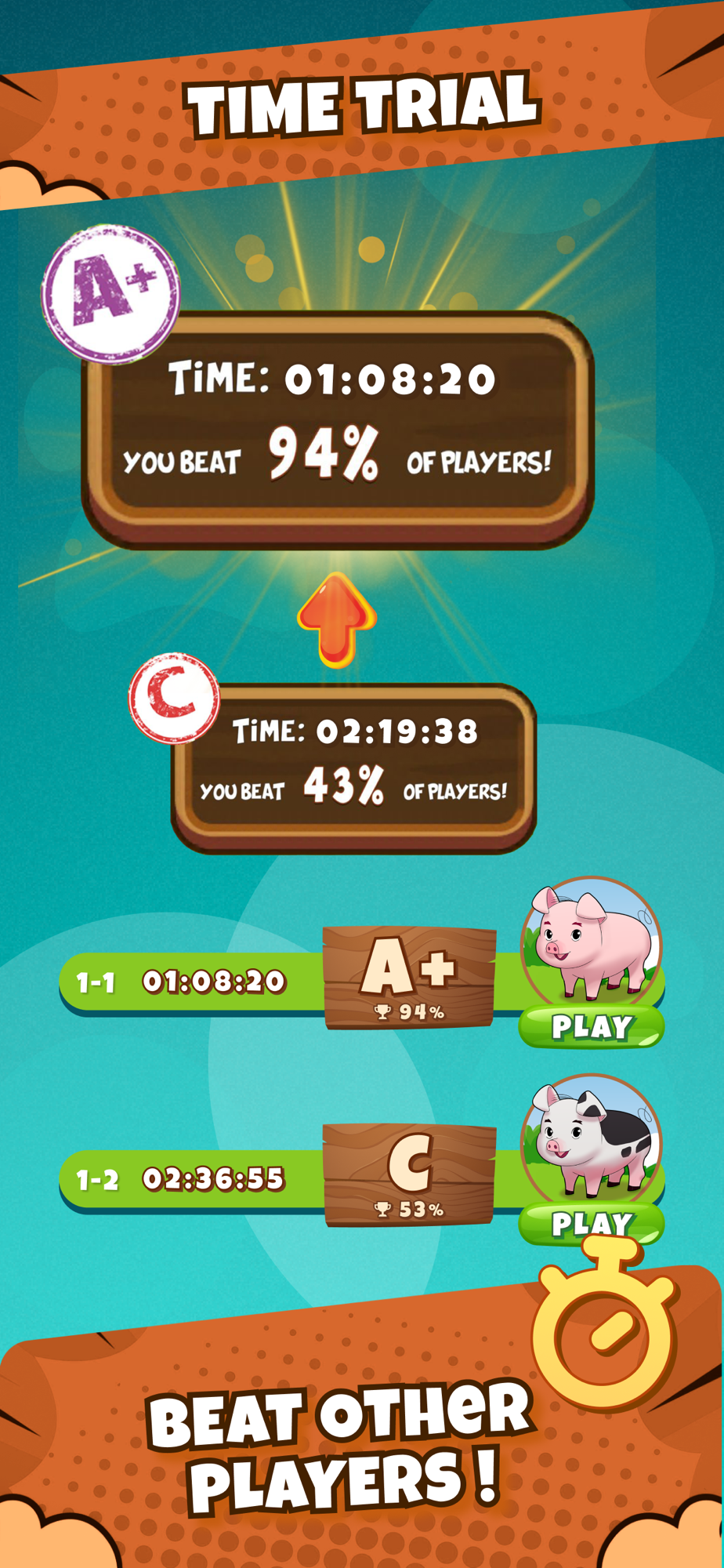 Challenge players all over the world! In Time Trial mode, you can challenge the records of players around the world! The shorter the time to complete the levels, the higher your ranking will be. Aim for the top and show off your performance on social media!