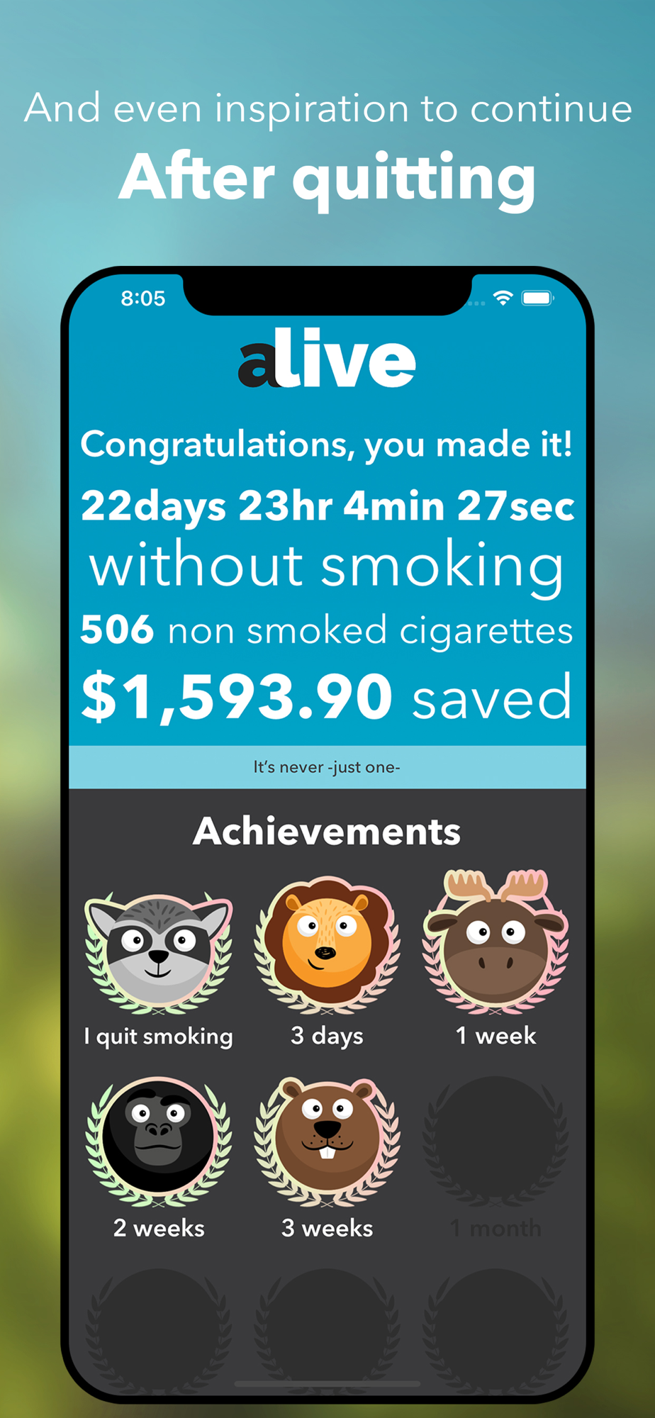 Alive is not just cutting down to quit smoking. It adapts to you throughout the process to maximize results.