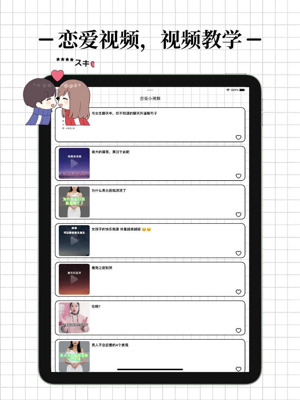 打开沟通的桥梁,教你再不同的场合,用不同的方式去搭讪.创造一个美好的开始,并在恋爱不同的阶段提供聊天的话术与恋爱的经验让你从小白快速成长.追到心仪的女神.走上人生巅峰