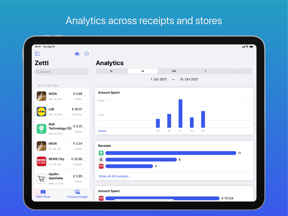 Extensive analytics about stores and items give you an overview of all your purchases.