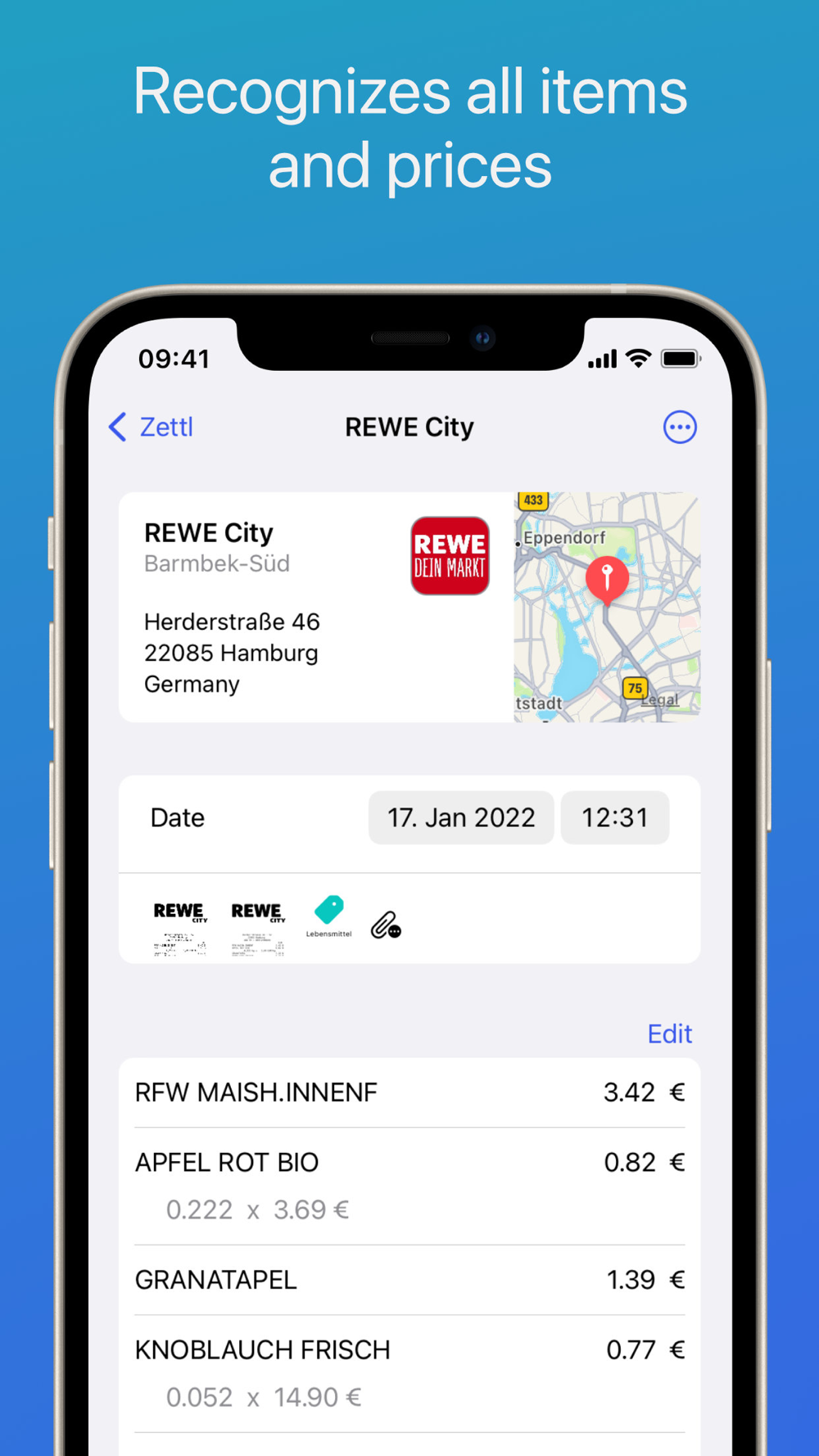 The app makes it easy to scan your receipts, recognizes the items and prices and gives you an overview over the items you buy every day!