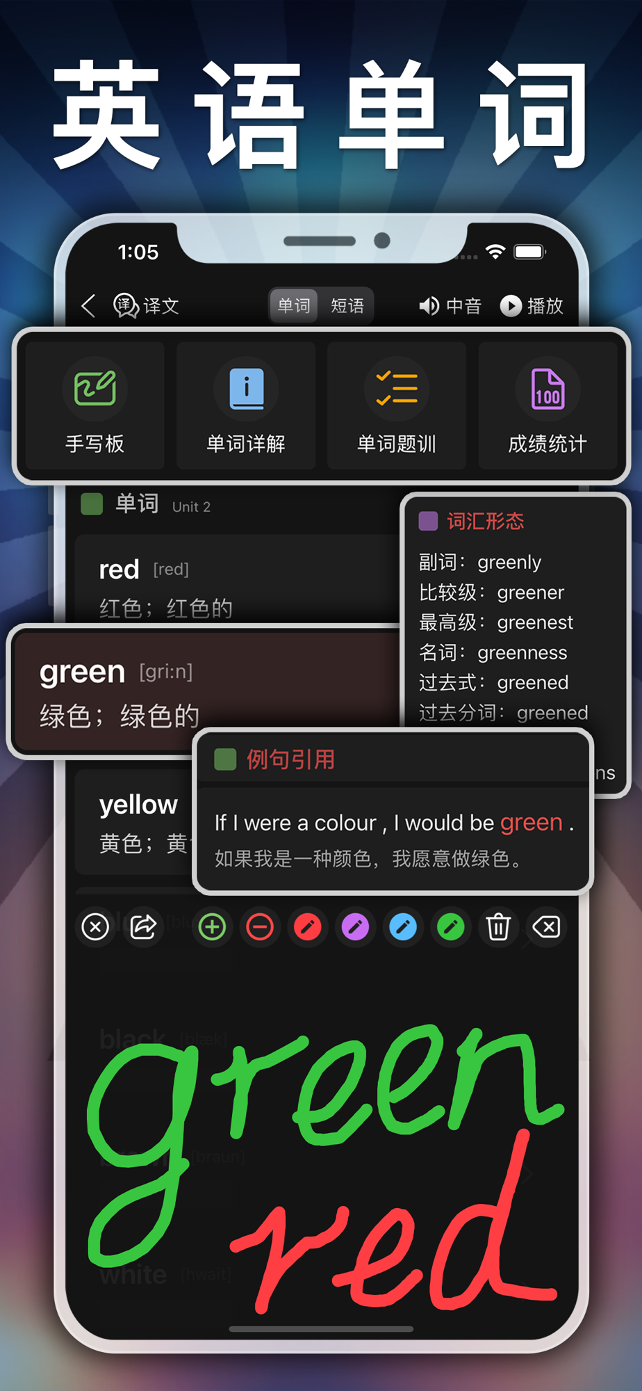 词语测验:记录学习单词短语,图标统计,让进步有个见证!