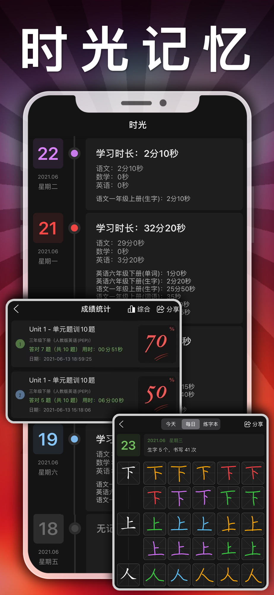 (学习成绩记录:课文学习、学习时长、单词学习、单词训练)