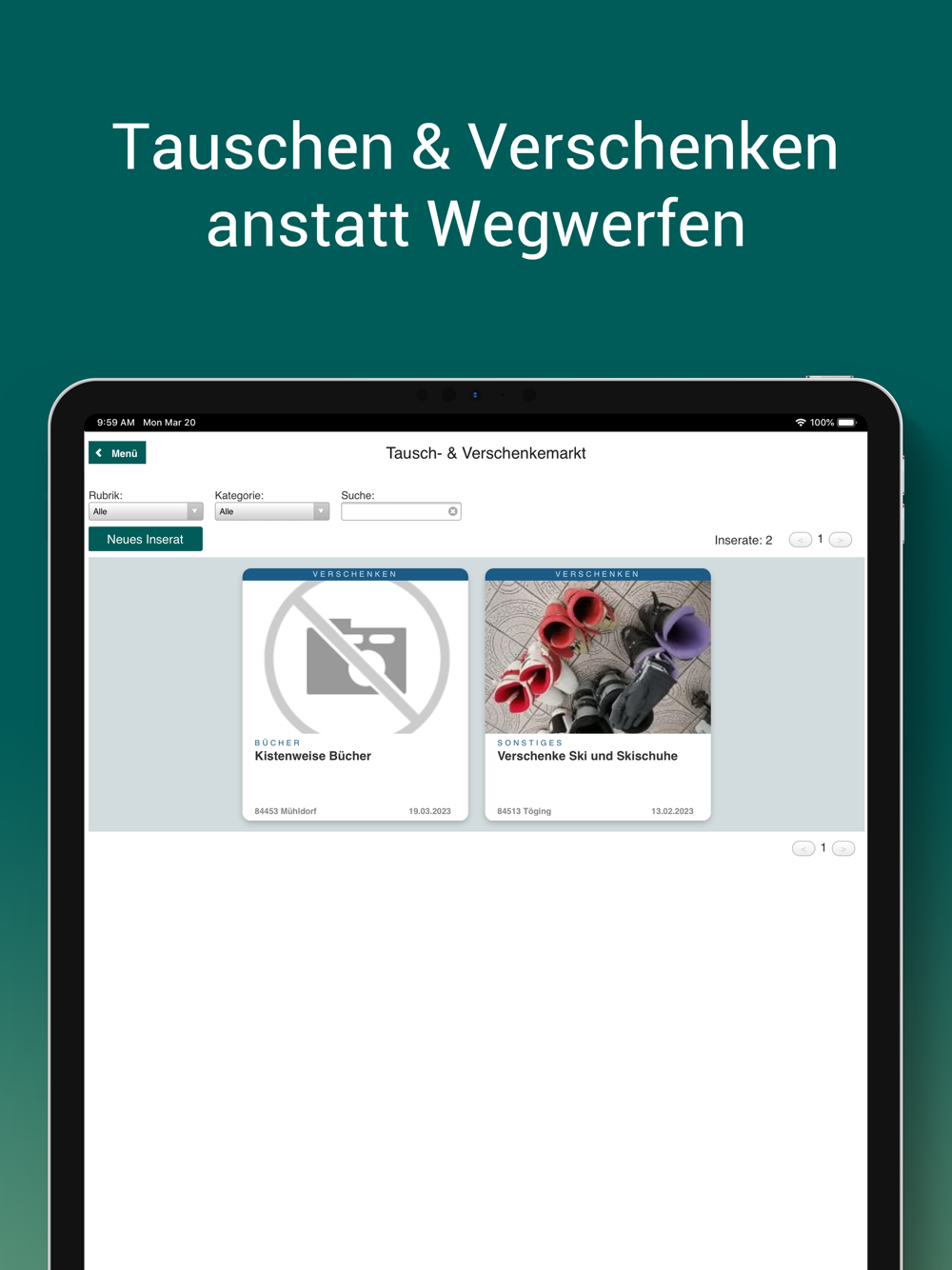 • Wiederverwerten statt wegwerfen. Dafür gibt es den praktischen Tauschmarkt.
