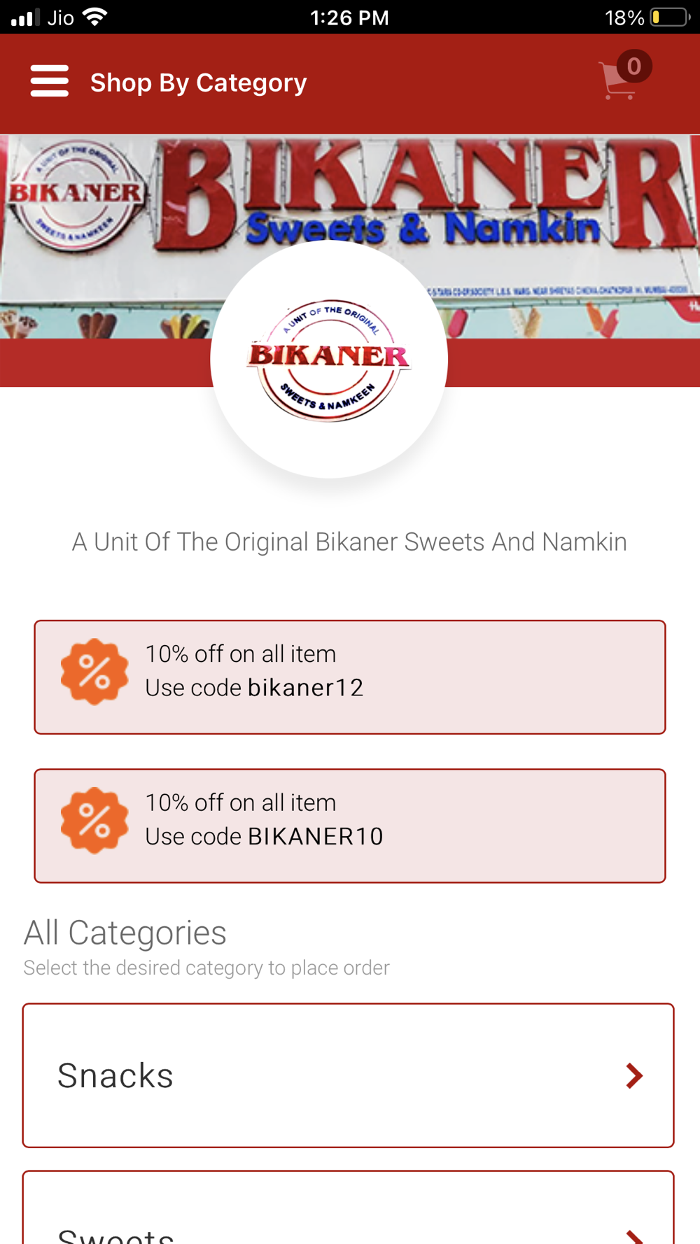 Bikaner Sweets is an online store for food ordering and delivery from Bikaner Sweets Shop based in LBS Marg, Mumbai.