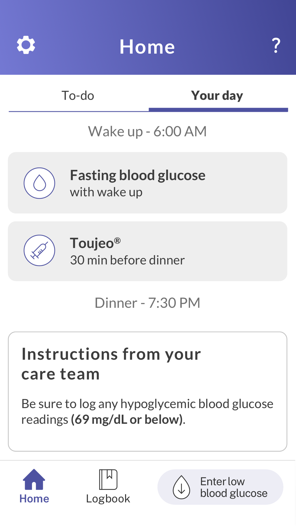 My Dose Coach™ Basal Titration is designed for adult patients who have type 2 diabetes and who have been prescribed and are taking a once-daily long-acting basal insulin by their healthcare provider. You will then be able to us My Dose Coach™ as an aid to track your fasting blood glucose levels and adjust your long-acting basal insulin dose based on your healthcare provider's plan to help you work toward your target glucose level.