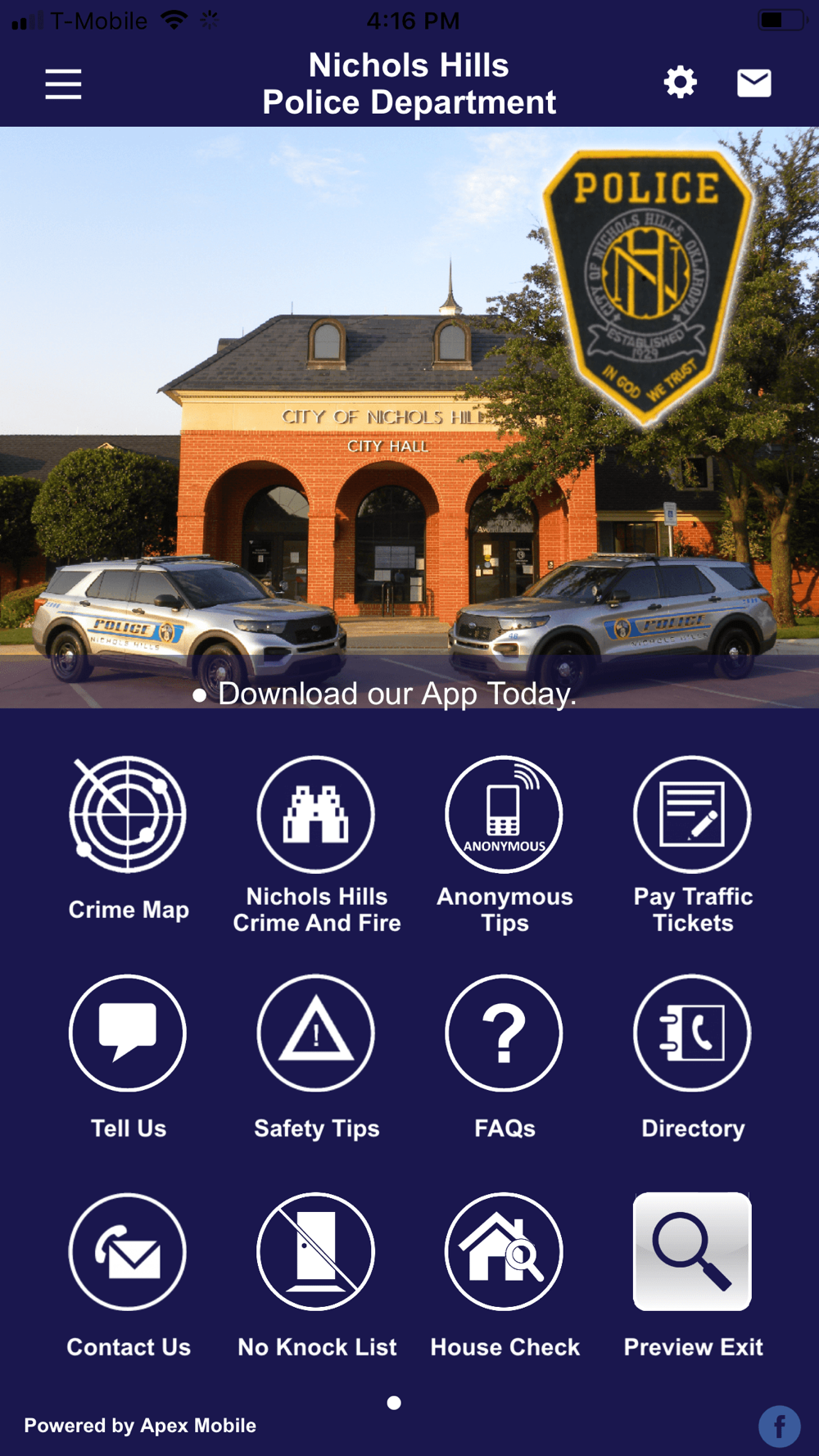 Welcome to the iOS app for the Nichol Hills Police Department. The Nichol Hills PD app allows users to report issues or concerns directly from your iOS device with photos! There are useful links for community resources, crime prevention, and on-line reporting!