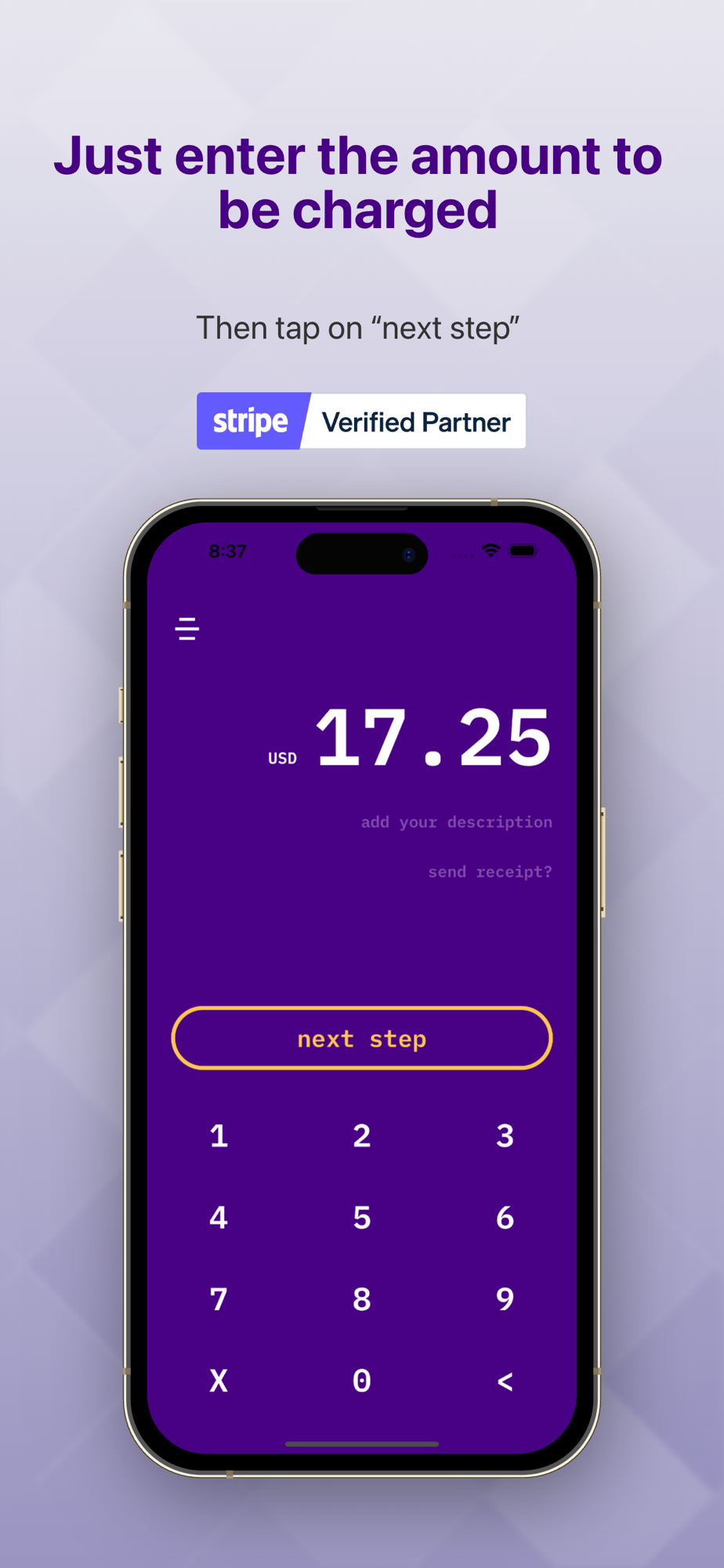 No additional equipment or card readers. All you need is your phone. Enter the card details by touching the back of the device (if your device is NFC-supported) or manually enter the credit card details. Literally, sell on the go.
