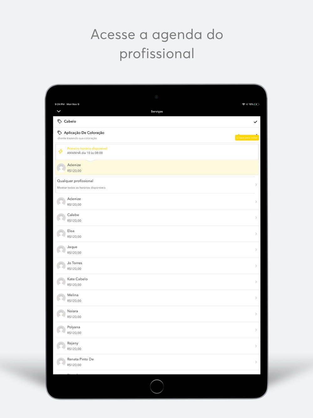 ► Marque horário com seu profissional favorito quando quiser, mesmo que você esteja no trabalho ou fora do horário comercial.