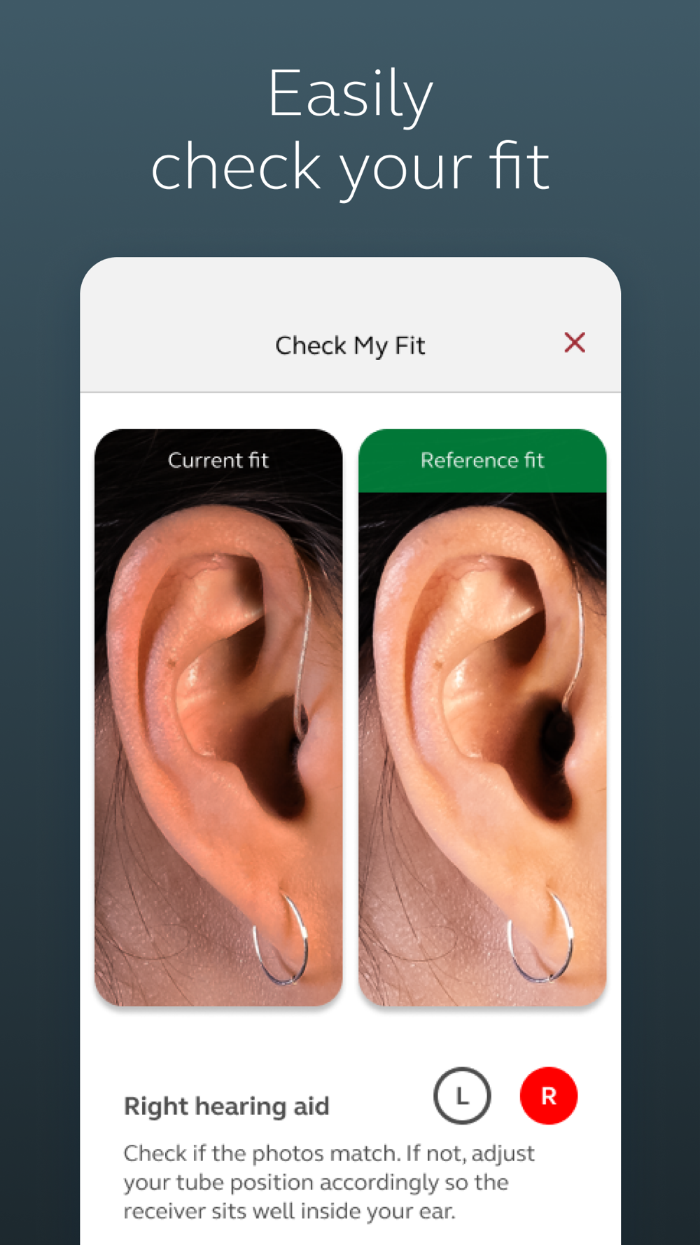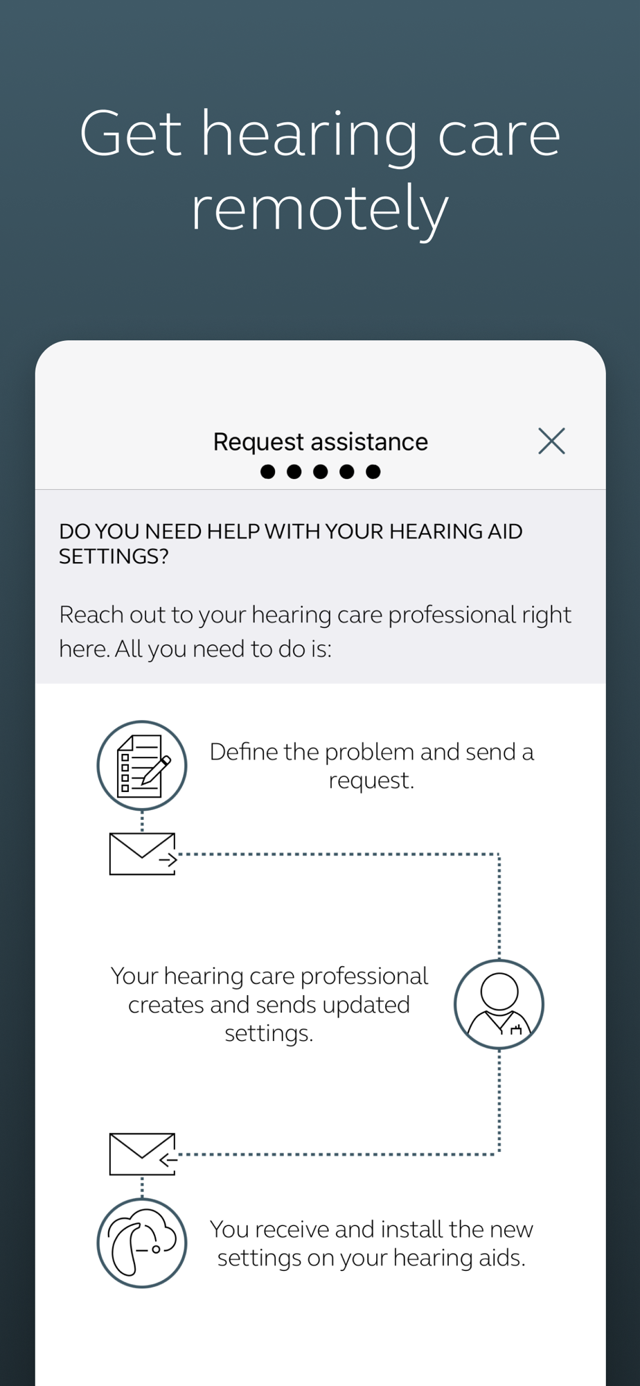 • Enjoy optimization anywhere with online services: Request help with your hearing aid settings from your hearing care professional and receive new settings and software updates.