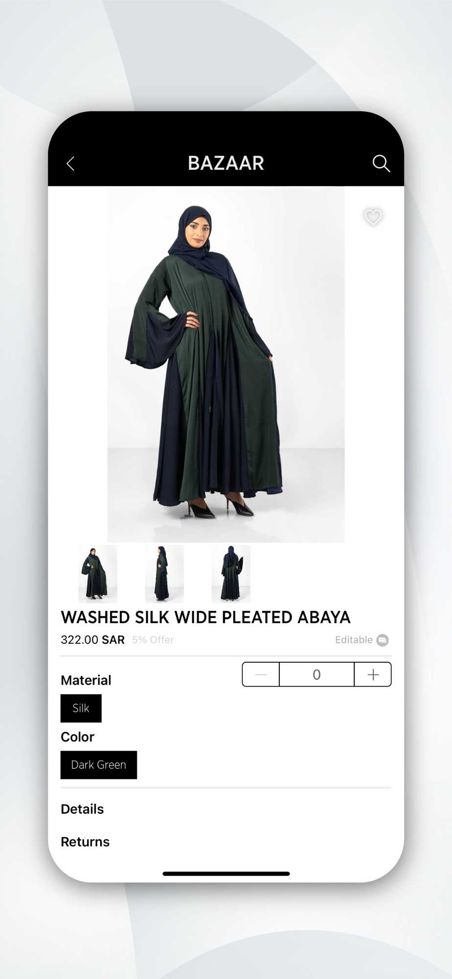 "Bazaar" is specialized platform in Arab wear including Luxury Abaya , Elegant Abaya, Plain Abaya, Bisht Abaya, Casual Abaya as well as events abayas for weddings , parties and events. We have large collection of Colorful and Modern abayas designed and produced by local designers .