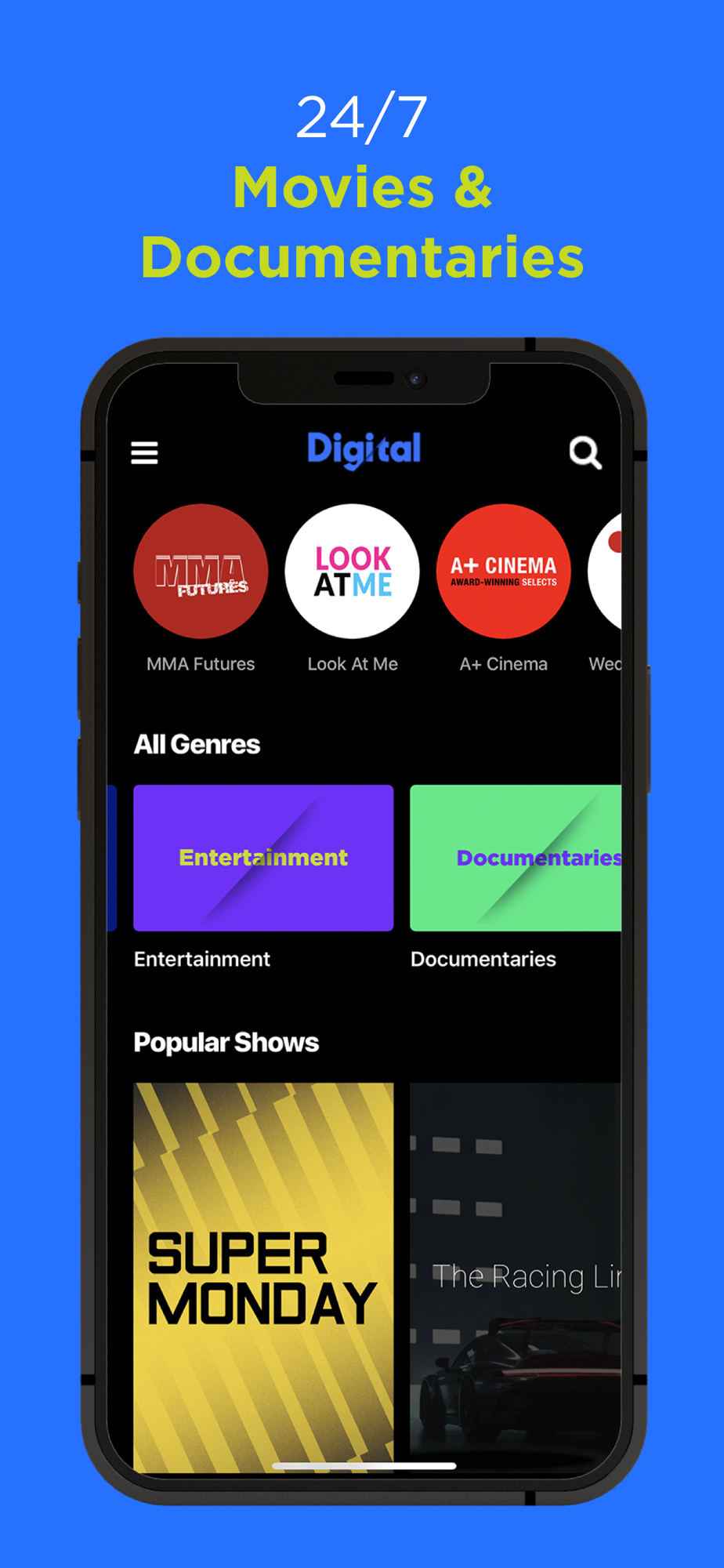 Instantly watch over 50 global channels covering genres of sports, documentaries, entertainment, live music, travel, children's cartoons, a variety of 24/7 movies and on-demand series. Watch daily, any time of the day, on your phone or TV without missing a second of your shows or movies.