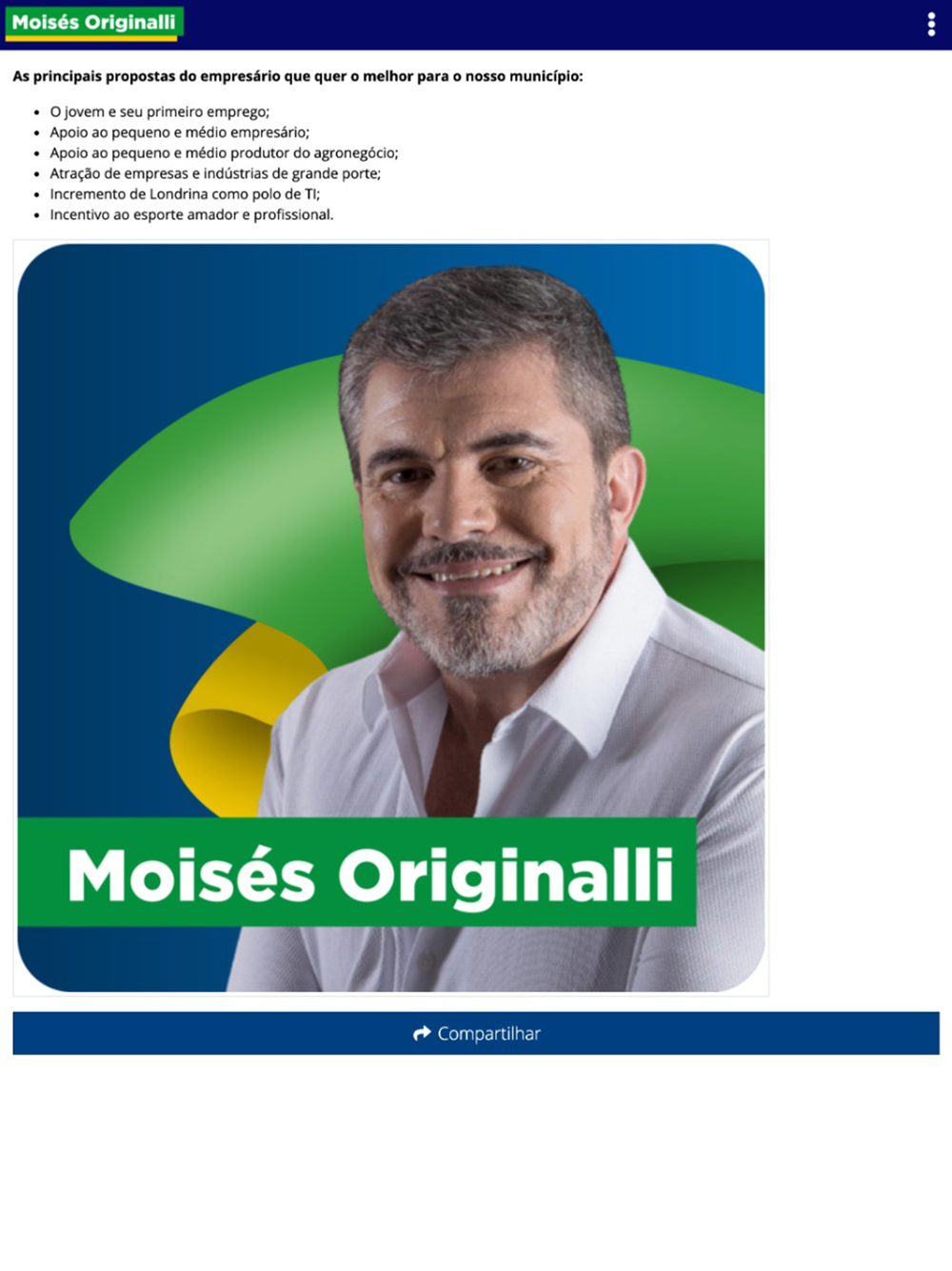 Através desse dispositivo, o público em geral terá acesso a todas as informações sobre o candidato Moisés Originalli, como suas propostas, agenda de compromissos, notícias e vídeos, como também poderá enviar mensagens diretamente ao candidato e à sua equipe. Além de acompanhar suas redes socia