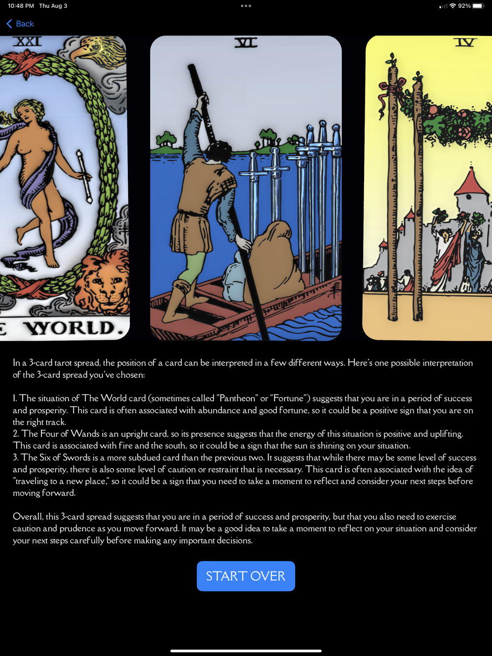 What sets TAROT RAVEN apart from other tarot apps is its integration of the Rider Waite tarot card deck and the use of on device AI for unparalleled accuracy in readings. The app's augmented reality (AR) features allow users to visualize and explore the tarot cards in a highly interactive and engaging manner.