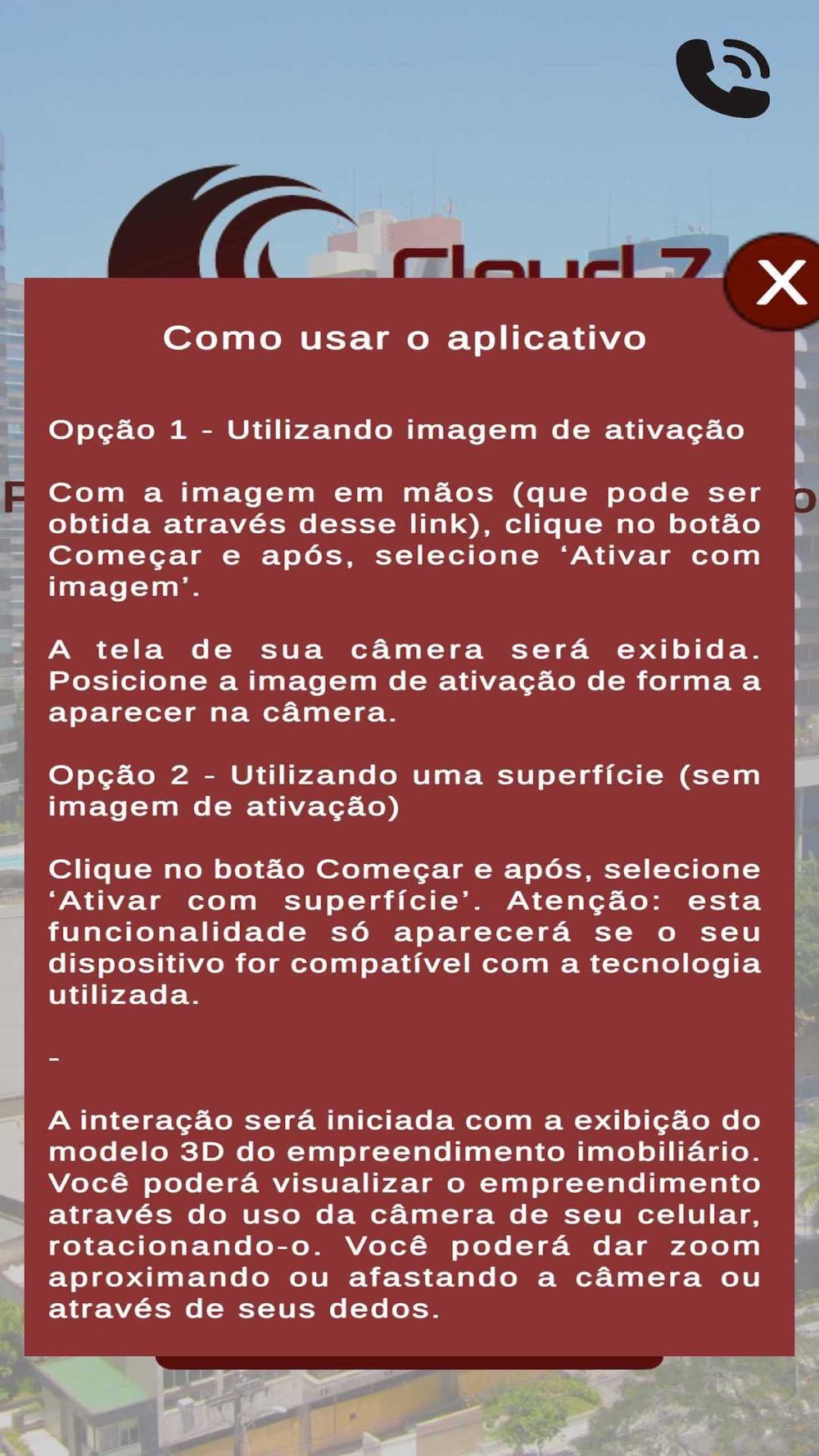 Aplicativo de demonstração de Realidade Aumentada criado pela Cloud 7 Innovation para o setor imobiliário.
