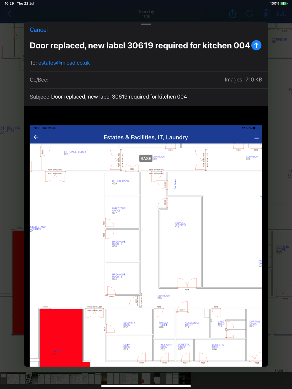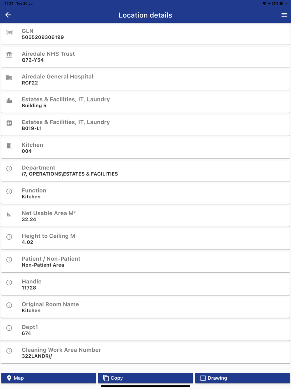 The Micad GLN Scanner App is an implementation aid for NHS Trusts committed to GS1 rollout. The App is specifically designed to speed up and improve reliability of the labelling process for GLN barcodes fixed to walls and doors. By scanning the GS1 GLN barcode, the App lists the room’s physical address together with any related meta and ‘functional’ occupancy data. The CAD floor plan provides the confirmation needed to be assured that correct room has been chosen for libelling. The room highlighted in red automatically at the request of the GLN lookup.