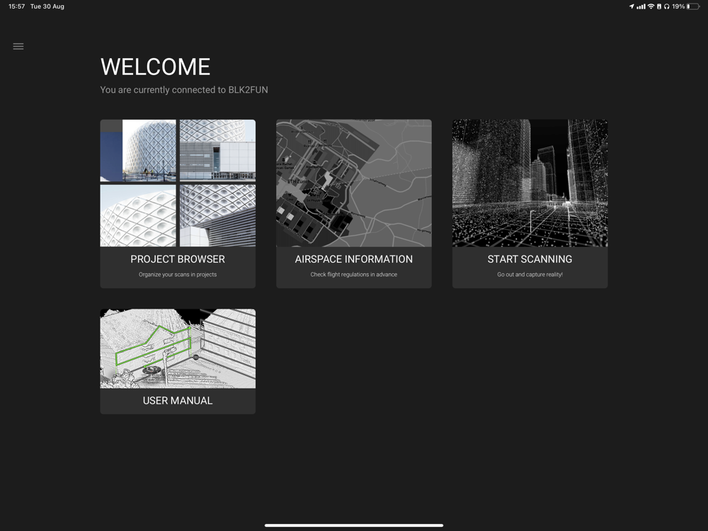 Use the BLK2FLY Live app to connect to your Leica BLK2FLY aerial LiDAR scanner.