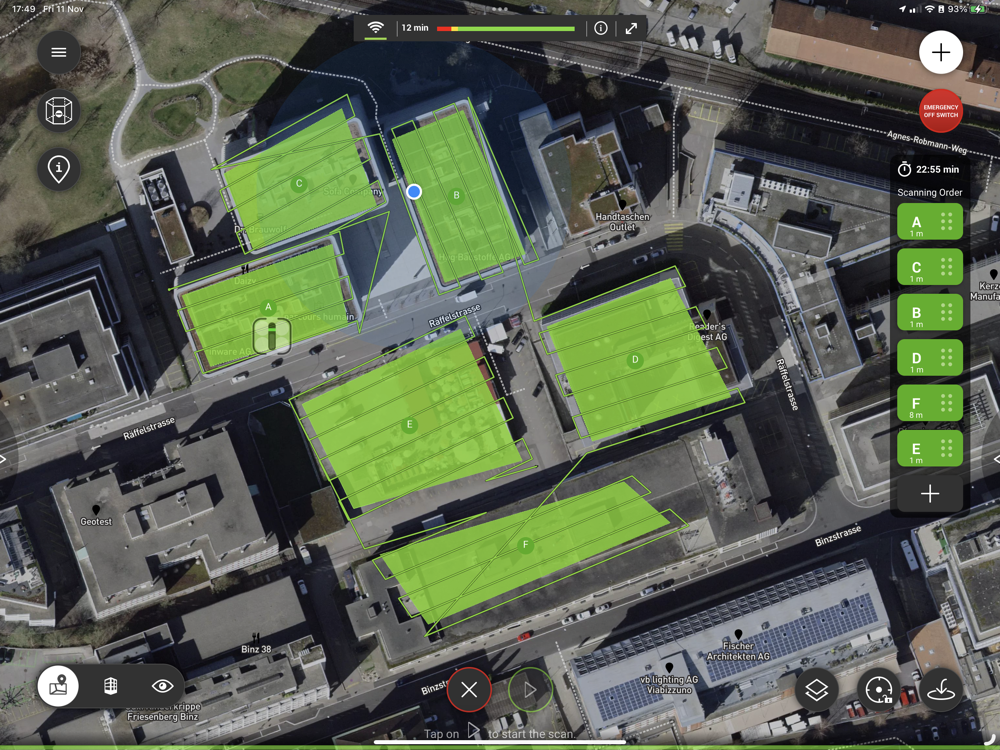 Recorded scans can be managed within the project browser section of the app. Moreover, recorded scans can be directly uploaded to our Reality Cloud Studio powered by HxDR for post processing and enhanced visualization. As safety plays an important role the app additionally provides airspace restriction information and warns the user if flight regulations are violated.