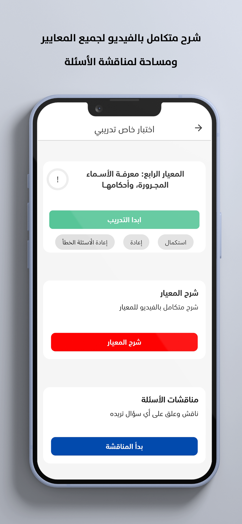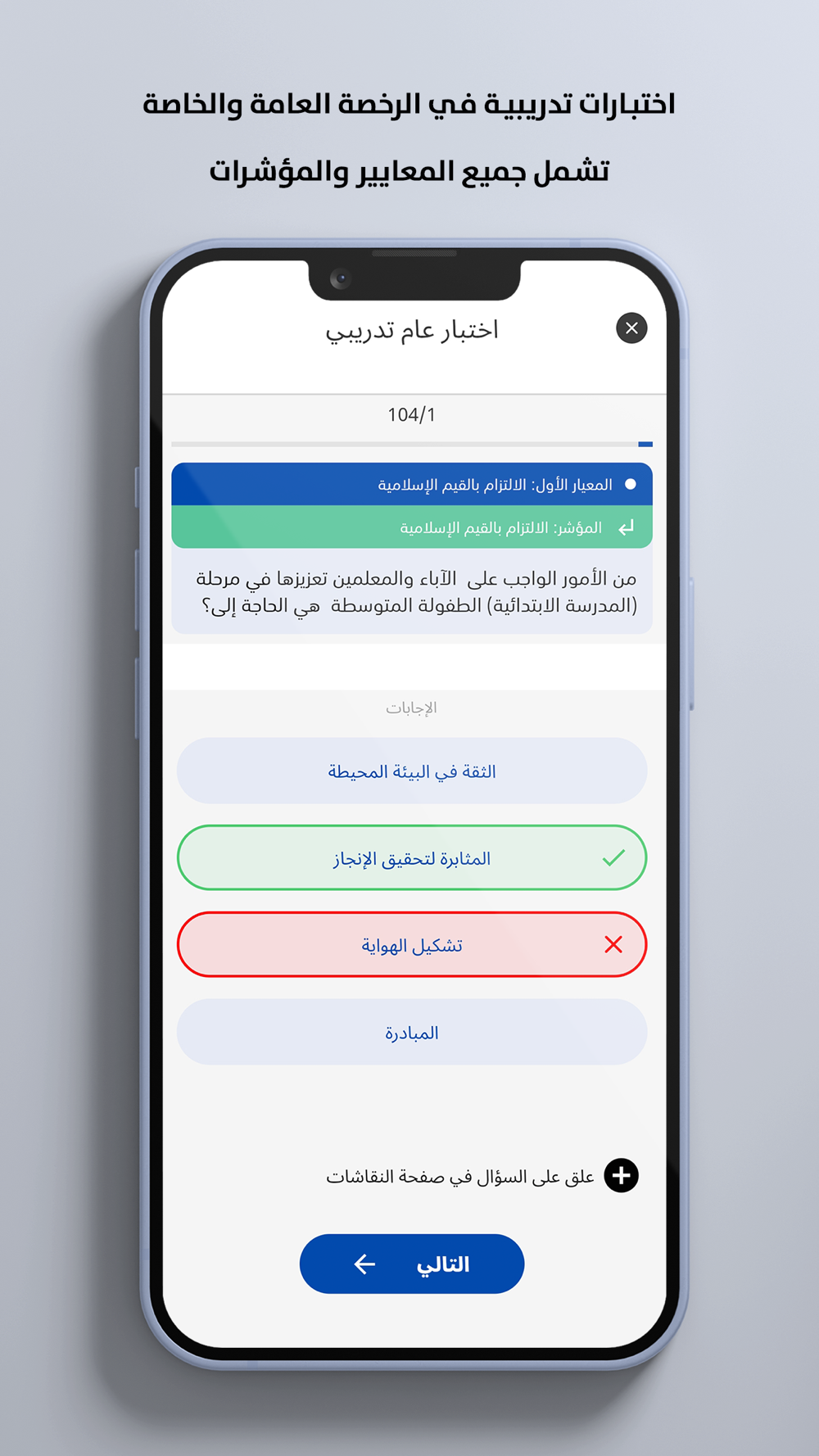 التطبيق يحتوي على مطابق لمعايير الرخصة المهنية للمعلمين قسم العام، وكذلك اختبار بشكل أسبوعي حتى نهاية نون اختبارات الرخصة مع إعطاء درجة تقريبية للاختبار وكذلك