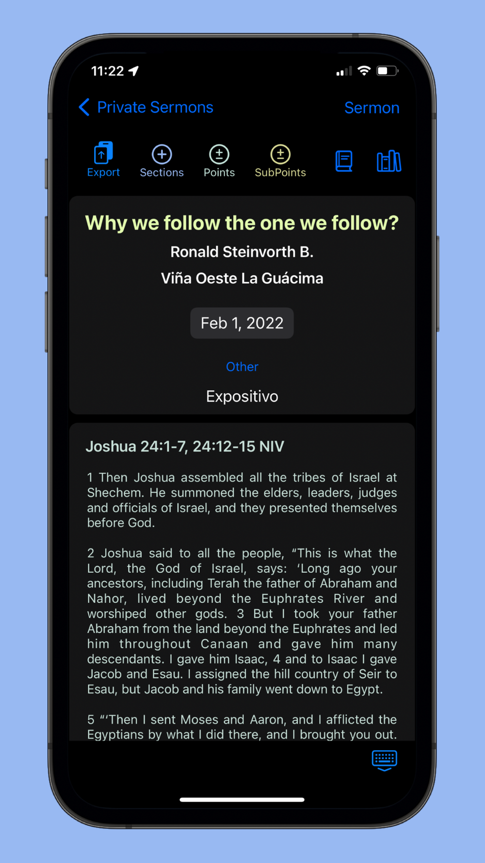 The main reason you will want to use this app is to unify the way one build the sermons and devotionals. This app was intentionally designed to unify the structure of all sermons and devotionals to have the same structures and order.