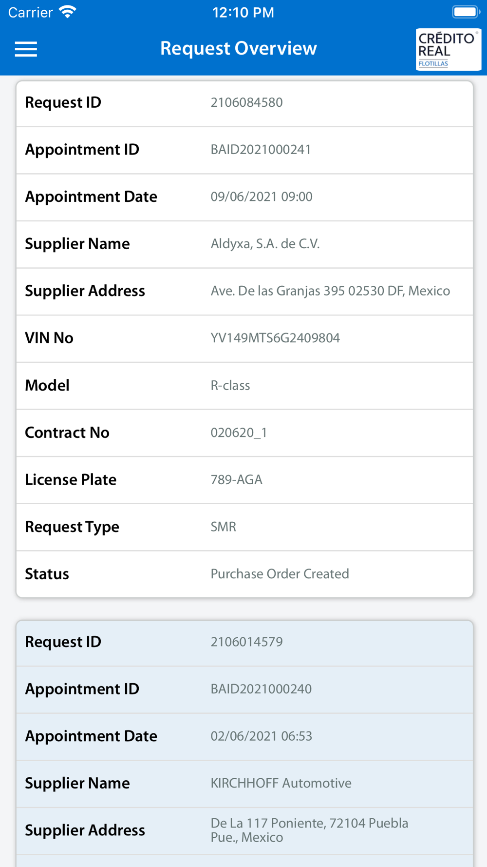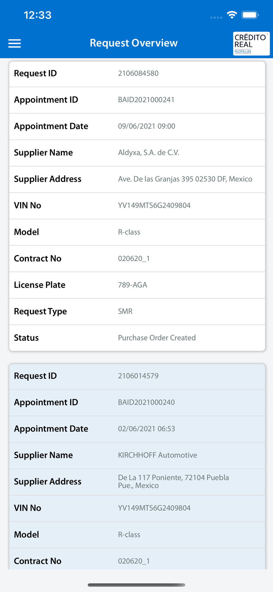 • Request the services in fleet management contracted to your vehicle through our Mobile App