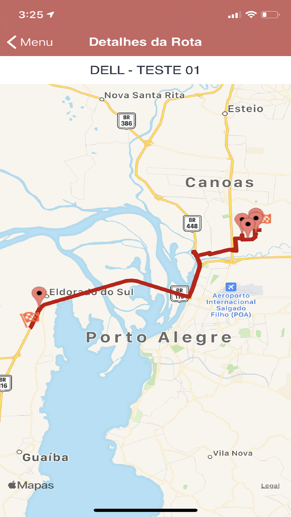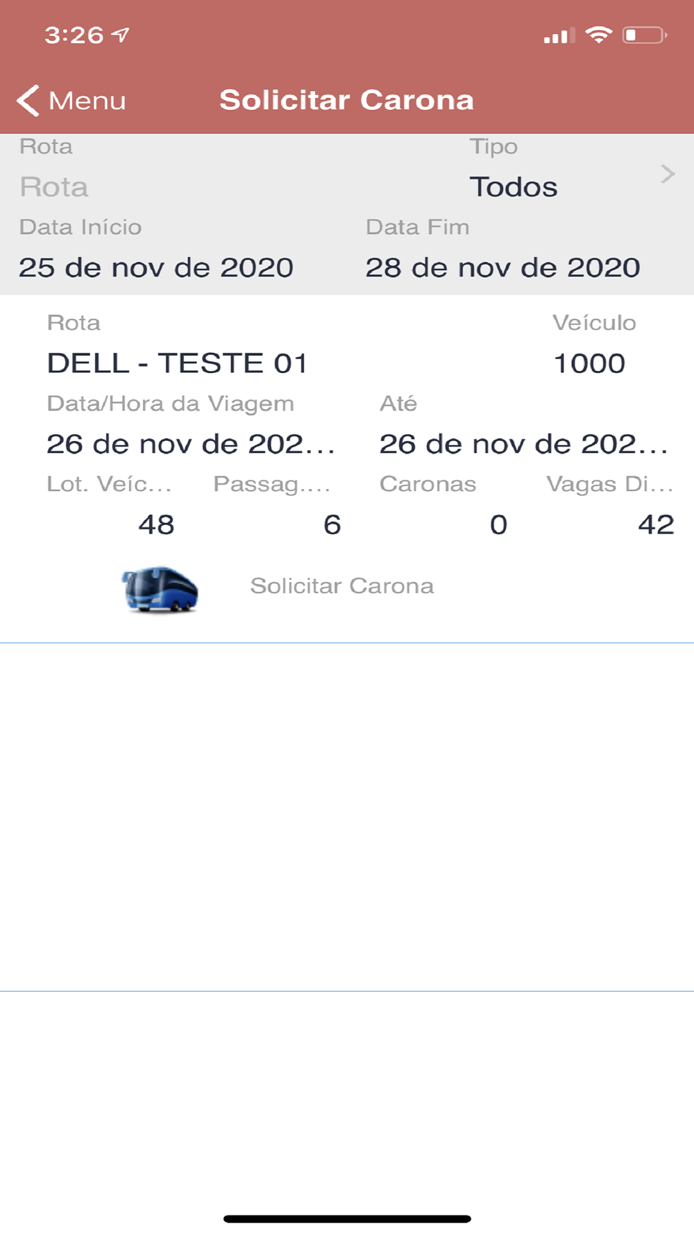 - Rotas disponíveis;