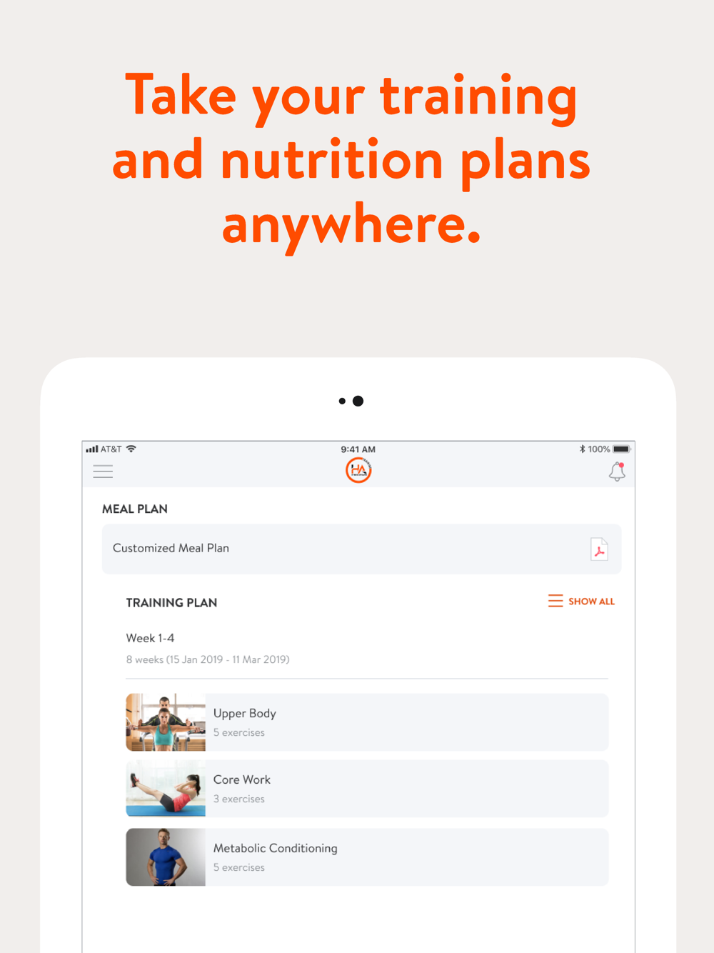 With the Hybrid Fitness Training App, you can start tracking your workouts and meals, measuring results, and achieving your fitness goals, all with the help of your personal trainer.