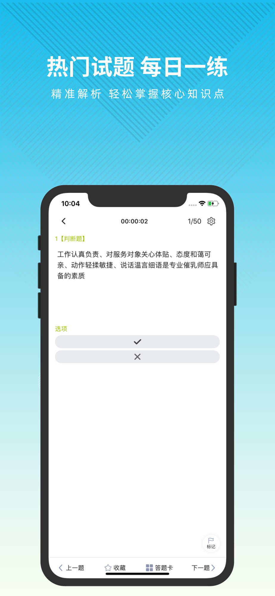 催乳师题库APP是一个针对催乳师考试的题库软件,涵盖了该考试热点、难点和常考点的考试模拟题库,是您学习和拿高分的好帮手。