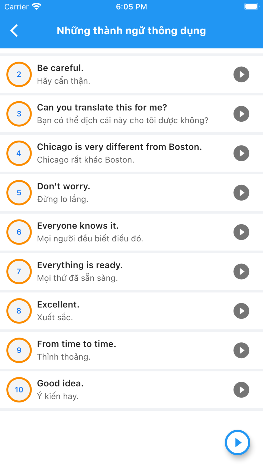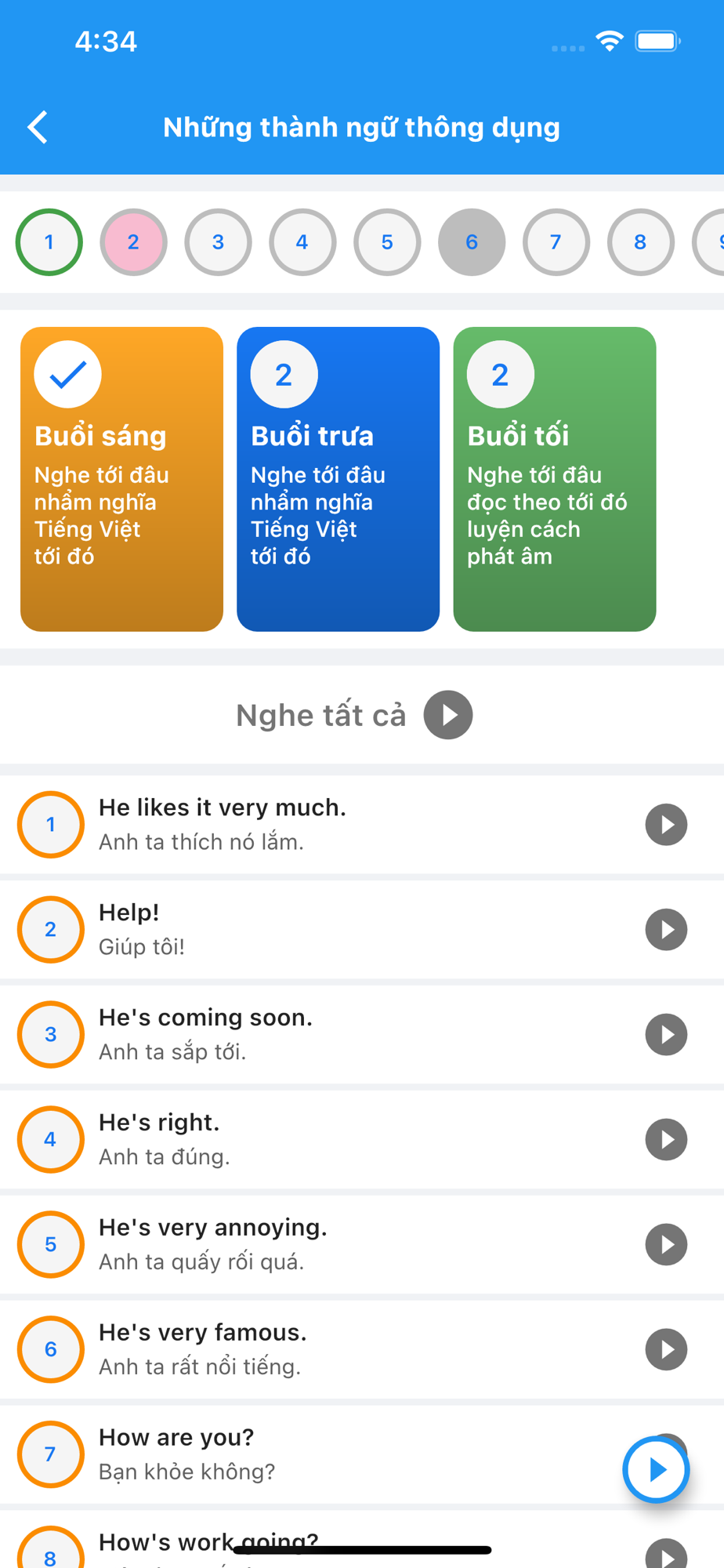 - Mỗi ngày, bạn học 10 câu và học trong 3 buổi.