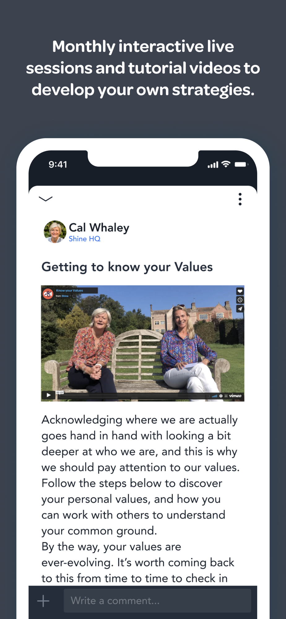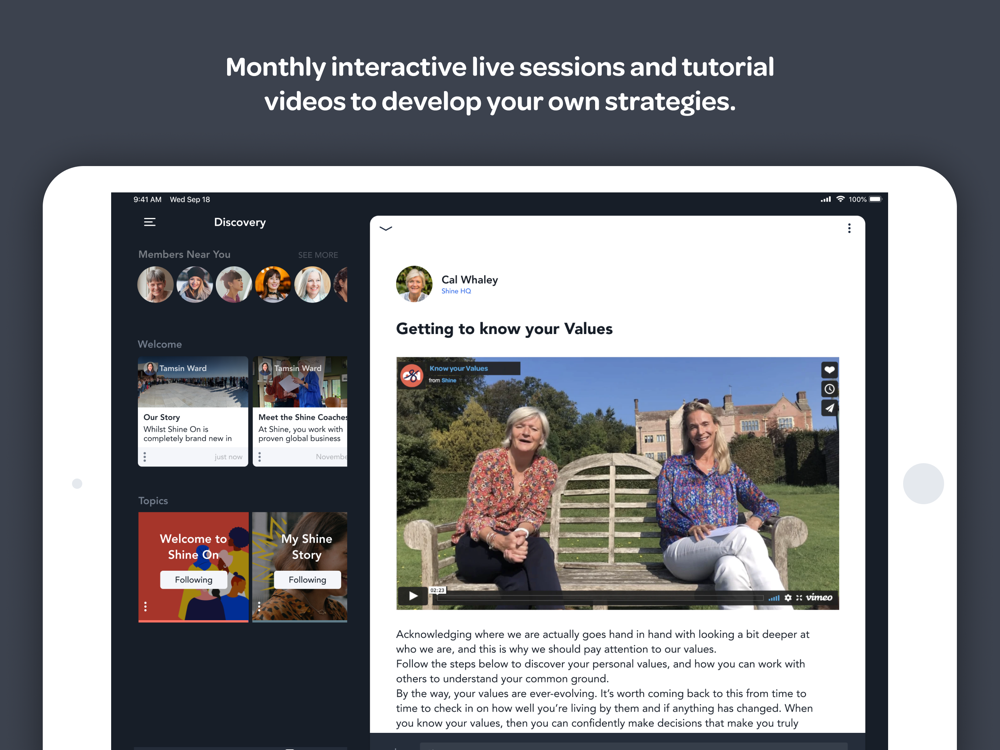 + Moments to share your progress and successes within Shine On and beyond.