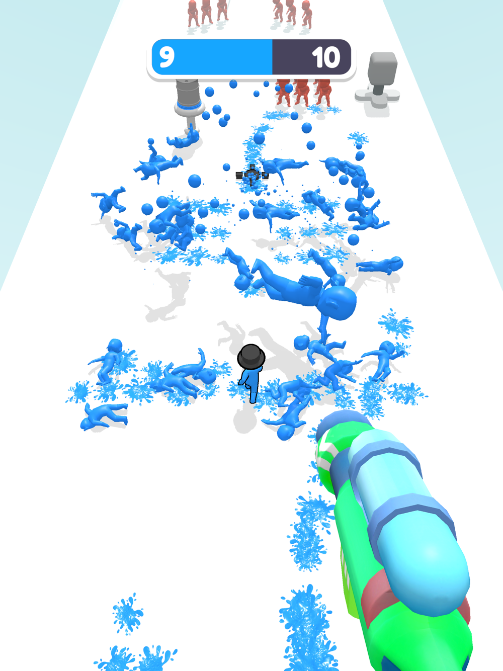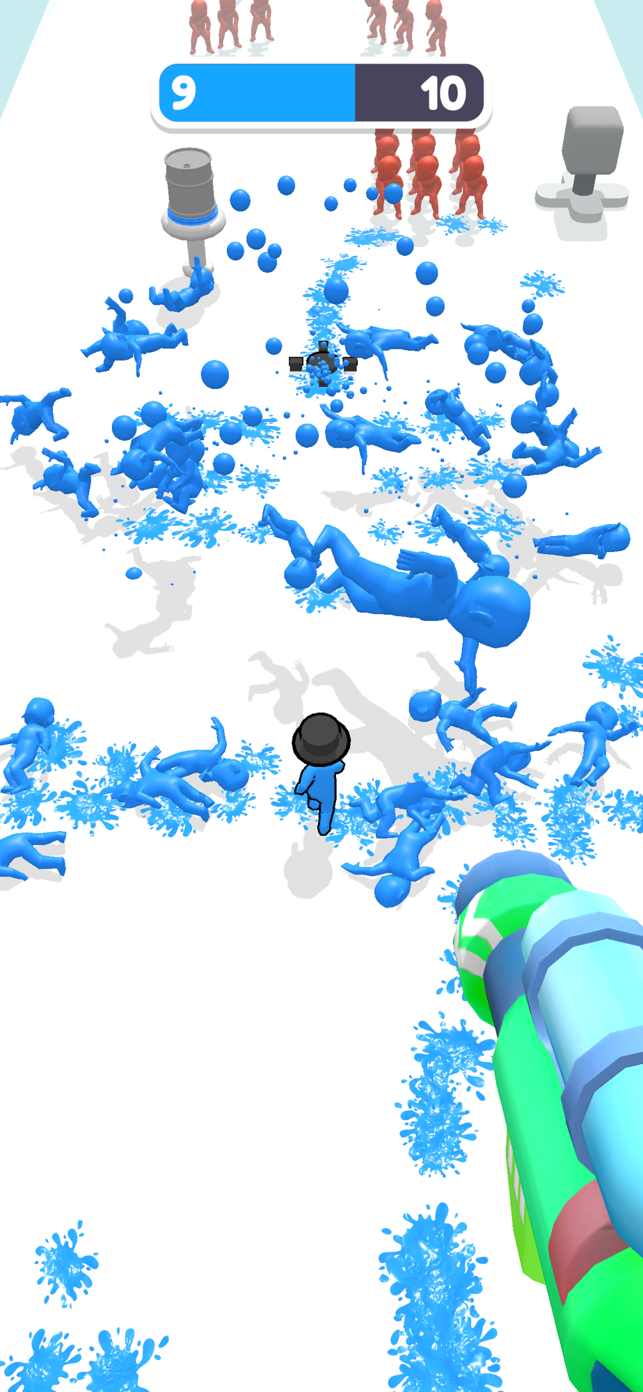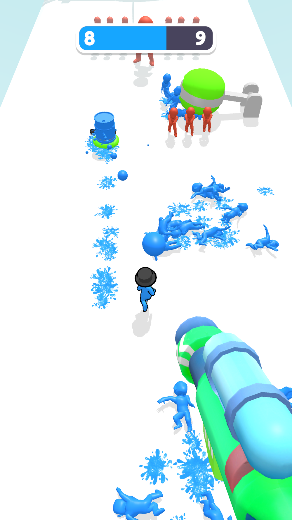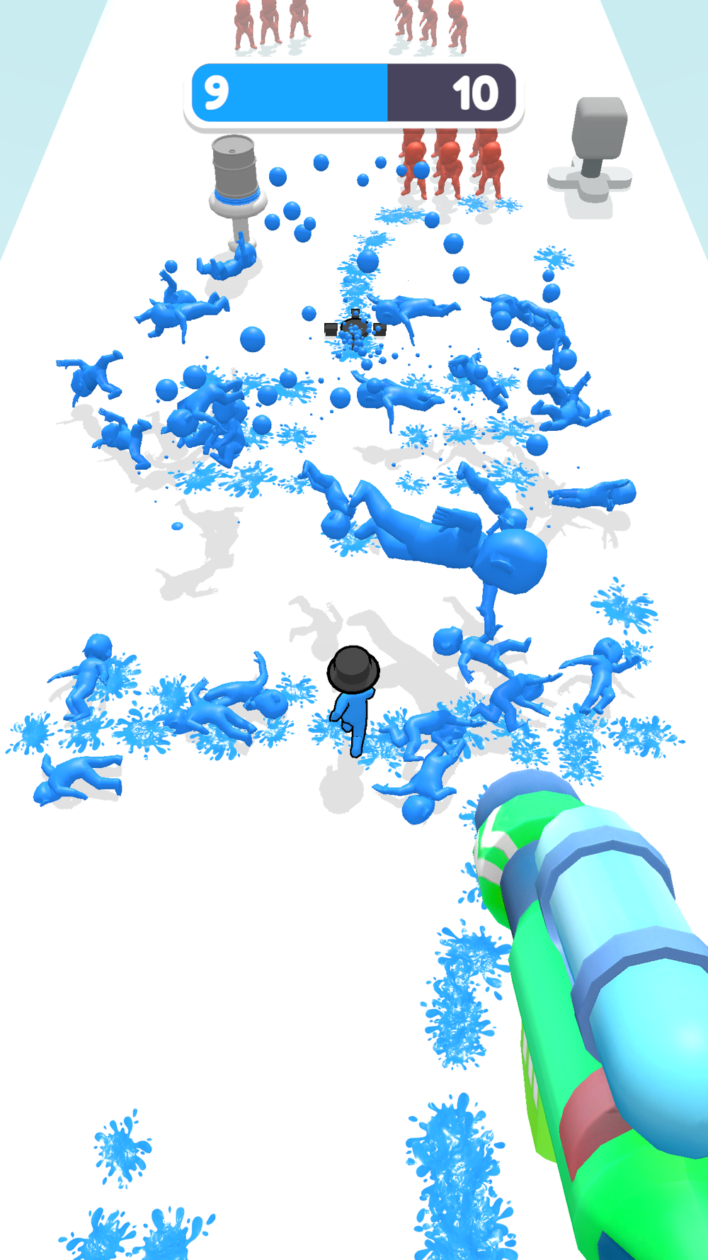 Paint enemies to protect our person for approaching the end of the level. There are barrels to refill for making re-action of helping tools that destroy enemies as zombies. It is going to be more fun to shoot from the above by helicopter which is a different view on the game!