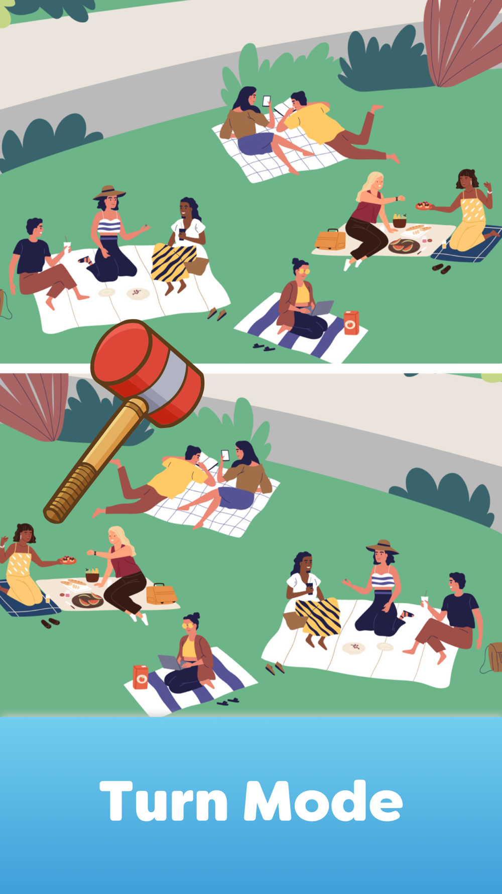 ~ Compare two highly identical photos and spot the 5 differences with easy points and clicks.