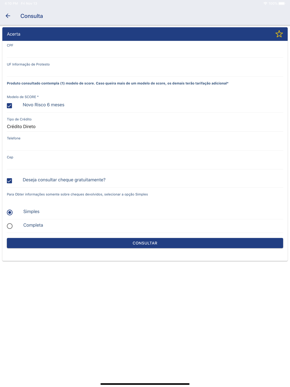 ACP SCPC é um aplicativo desenvolvido para consultas ao Serviço Central de Proteção ao Crédito (SCPC) exclusivo para associados da Associação Comercial do Paraná.