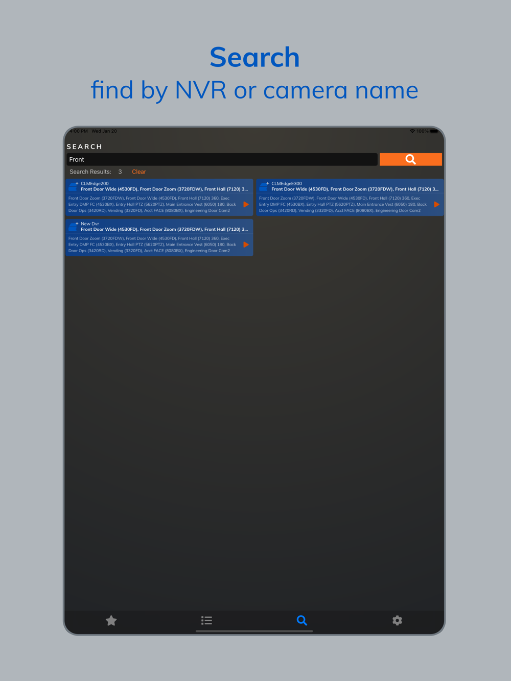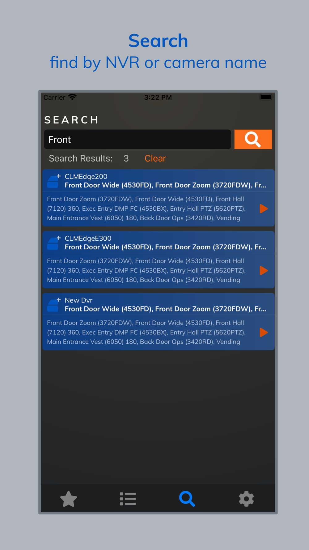 - Search for NVR by NVR name or camera name