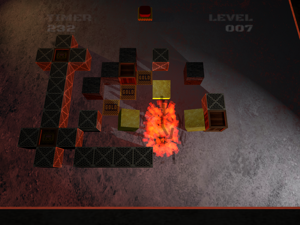 · Metal and golden blocks: If a block hits it, it is stopped, and this metal or golden block begin to move in same way and direction. If a next neighbors explodes then metal or golden block begin to move (same way and direction as the expansive wave).