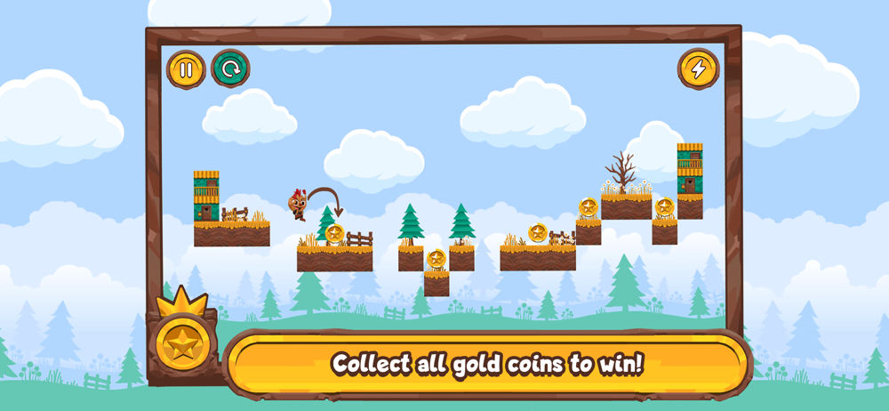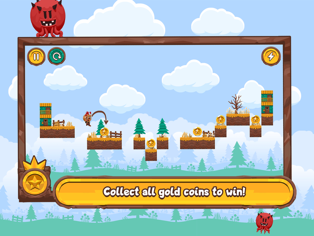 Touch and hold the right or left of the screen; You can control the Walnut Man, who jumps nonstop. Collect all the Gold Coins you see in the level by overcoming obstacles and complete the level. You can disable some obstacles if you have enough Gold!