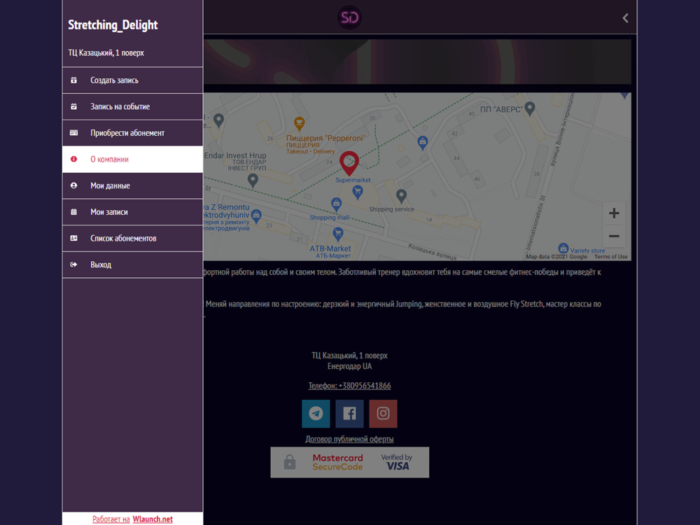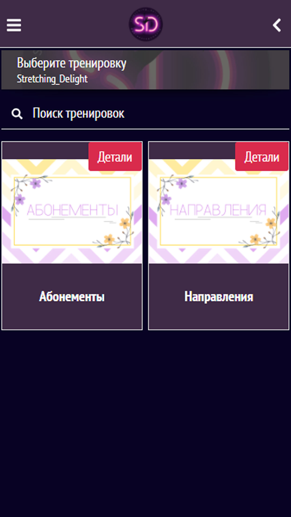 Приложение предназначено для клиентов студии растяжки Stretching_Delight.
