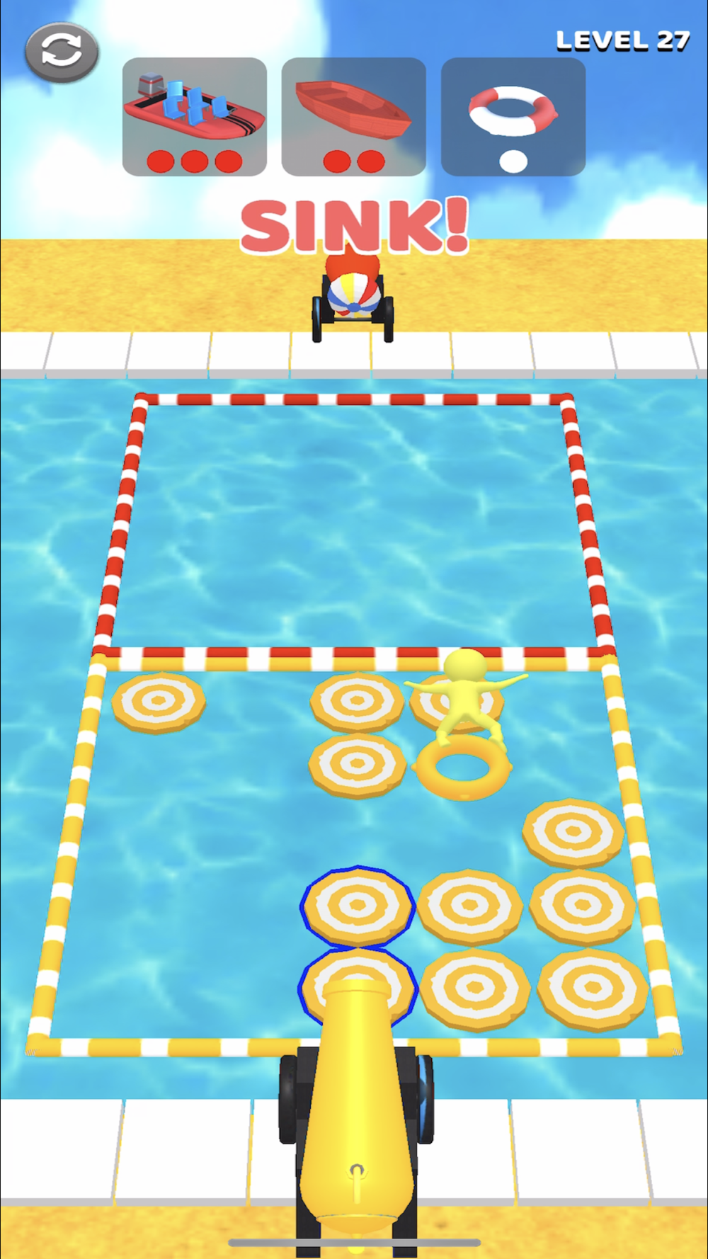 Pool fight! Use beach balls to sink hidden enemy ships!