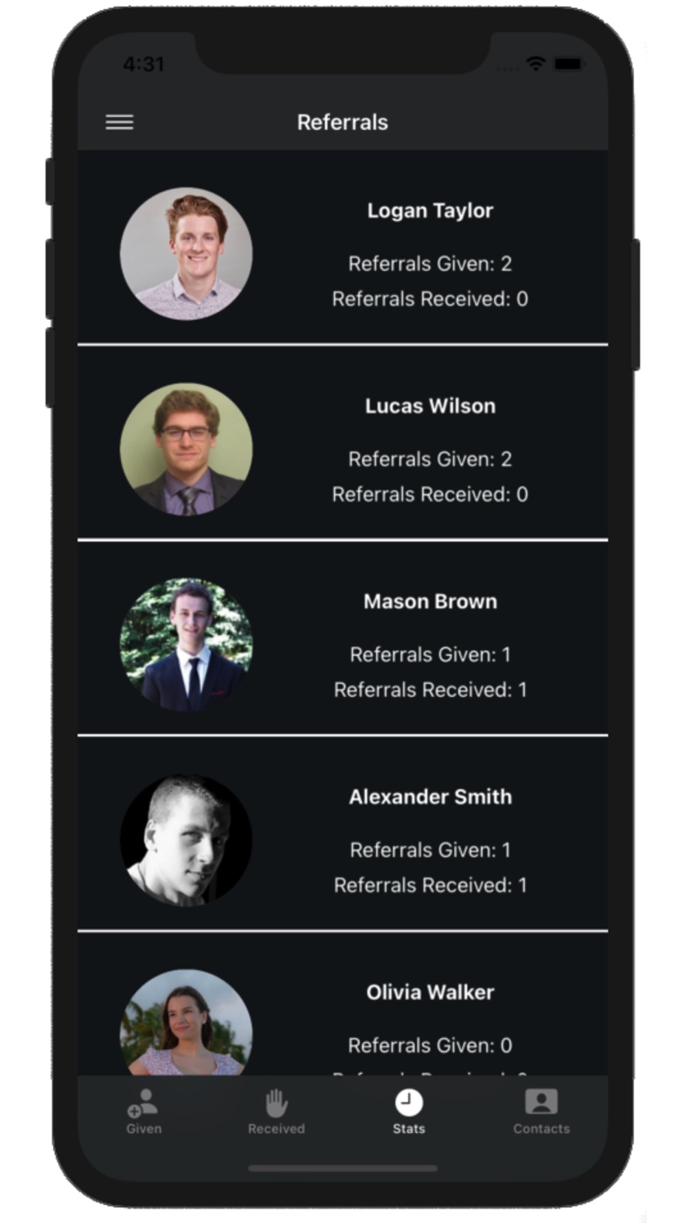 Administrators of the group are able to view the referral numbers from each member to ensure everyone is bringing value into the network.