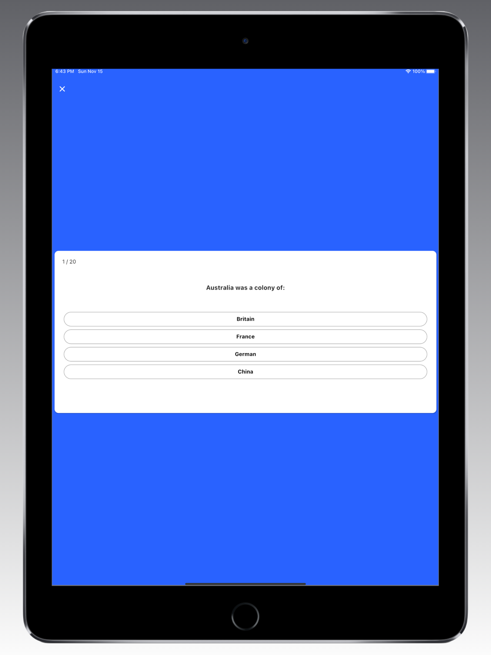 This Citizenship Test Australia will help you go through citizenship test questions and assess your knowledge. This app is a very effective way to practice your knowledge. Test it now!